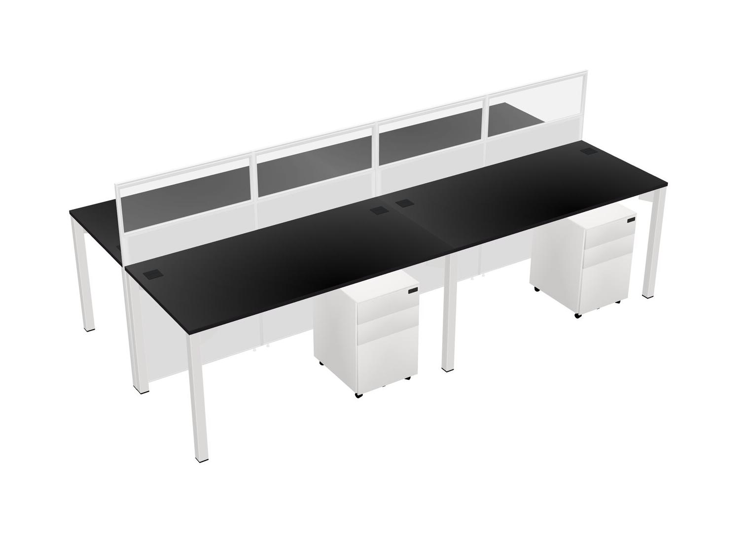 Black Shared Rectangular Office Cubicle Panel System With Mobile Drawers For 4 Persons