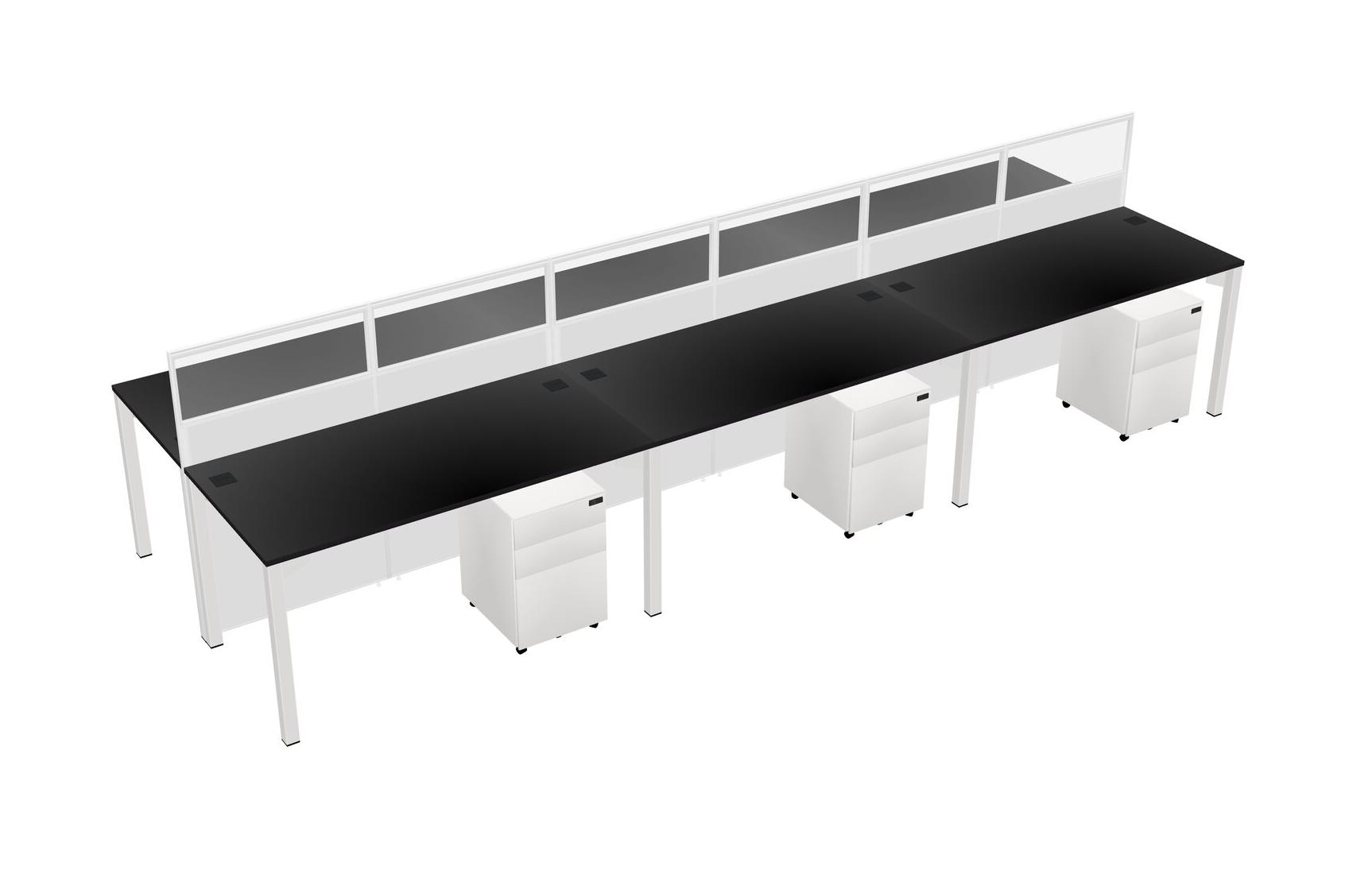 Black Shared Rectangular Office Cubicle Panel System With Mobile Drawers For 6 Persons