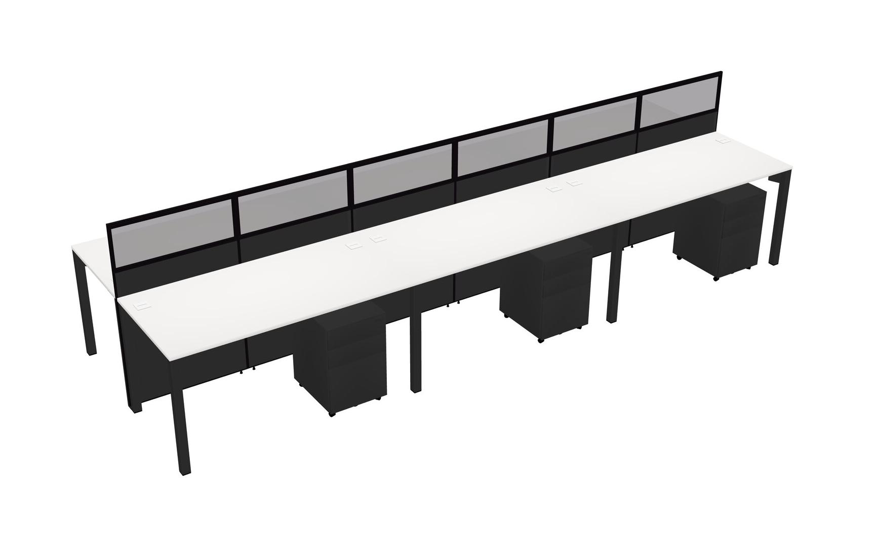 White Shared Rectangular Office Cubicle Panel System With Mobile Drawers For 6 Persons