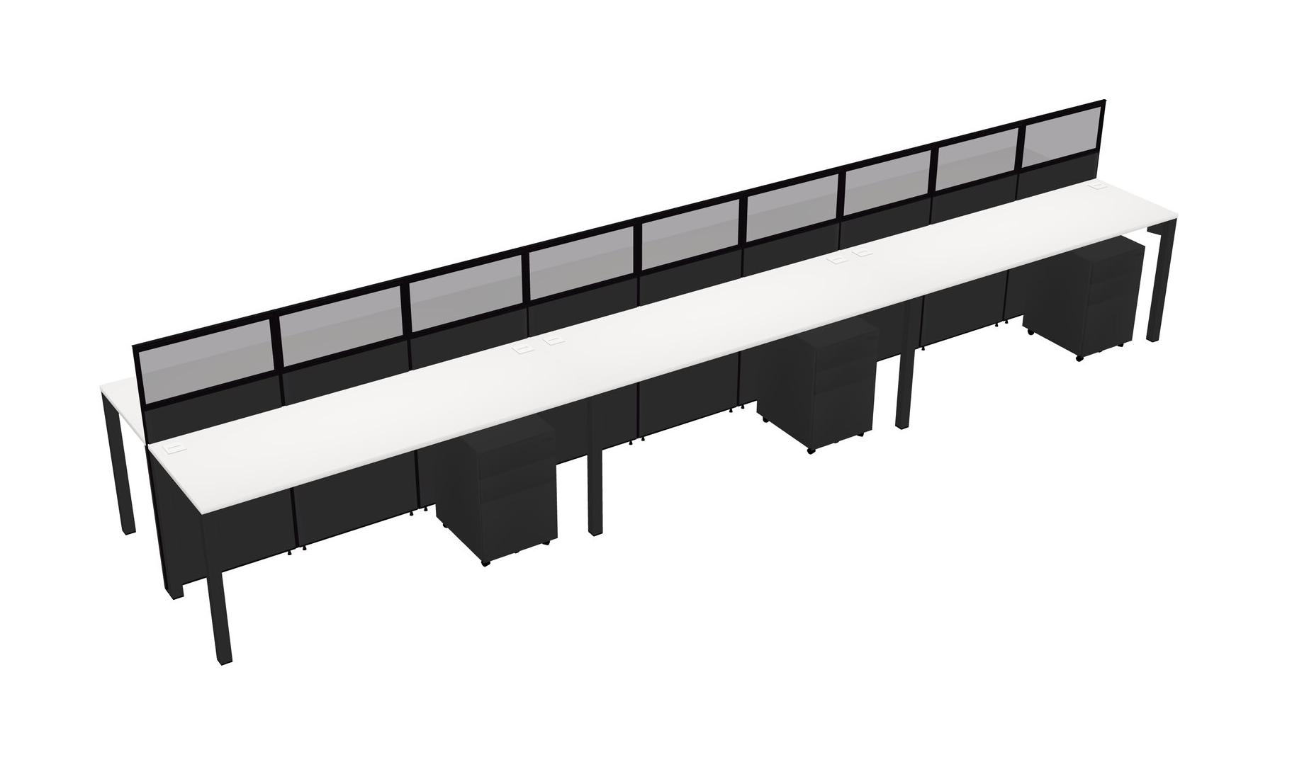 White Shared Rectangular Office Cubicle Panel System With Mobile Drawers For 6 Persons
