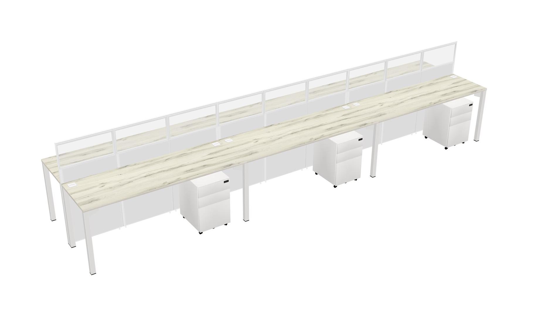 Heinne Holz Shared Rectangular Office Cubicle Panel System With Mobile Drawers For 6 Persons