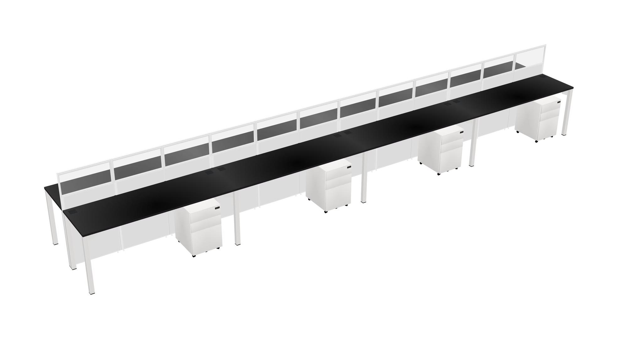 Black Shared Rectangular Office Cubicle Panel System With Mobile Drawers For 8 Persons