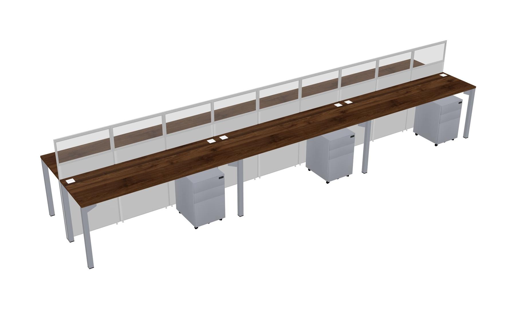 Columbia Walnut Shared Rectangular Office Cubicle Panel System With Mobile Drawers For 6 Persons