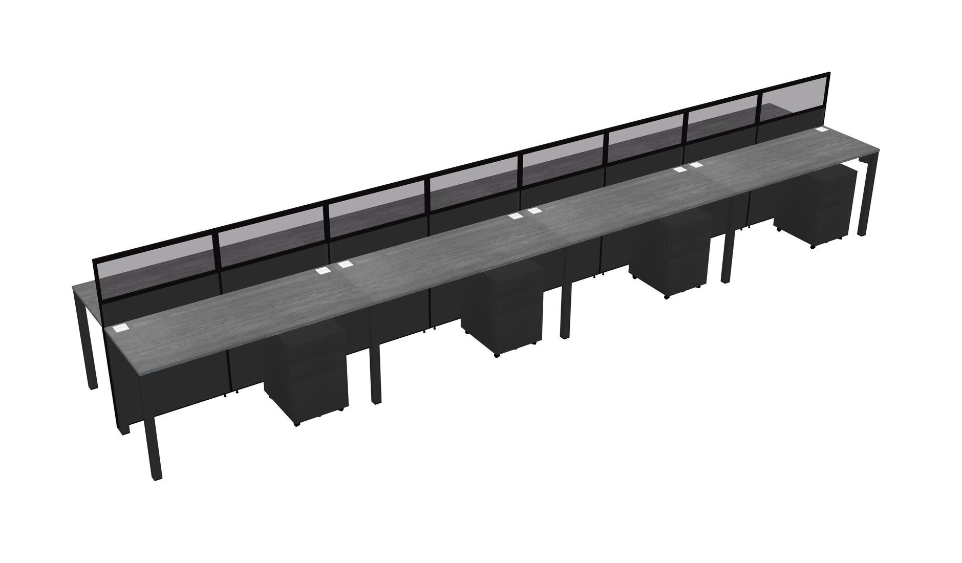 Grey Shared Rectangular Office Cubicle Panel System With Mobile Drawers For 8 Persons