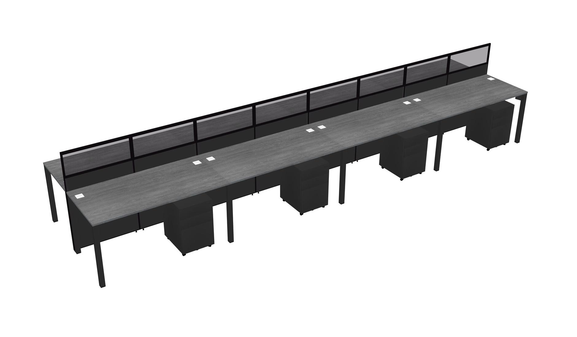 Grey Shared Rectangular Office Cubicle Panel System With Mobile Drawers For 8 Persons