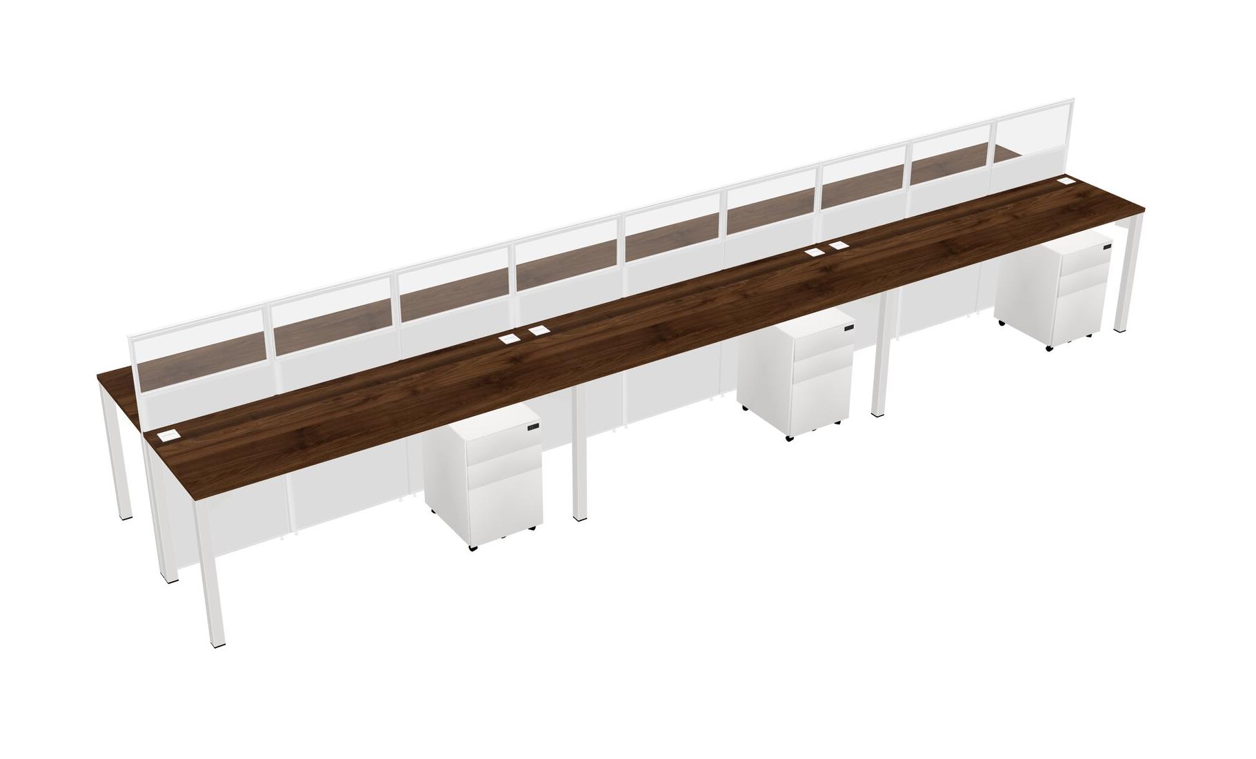 Columbia Walnut Shared Rectangular Office Cubicle Panel System With Mobile Drawers For 6 Persons