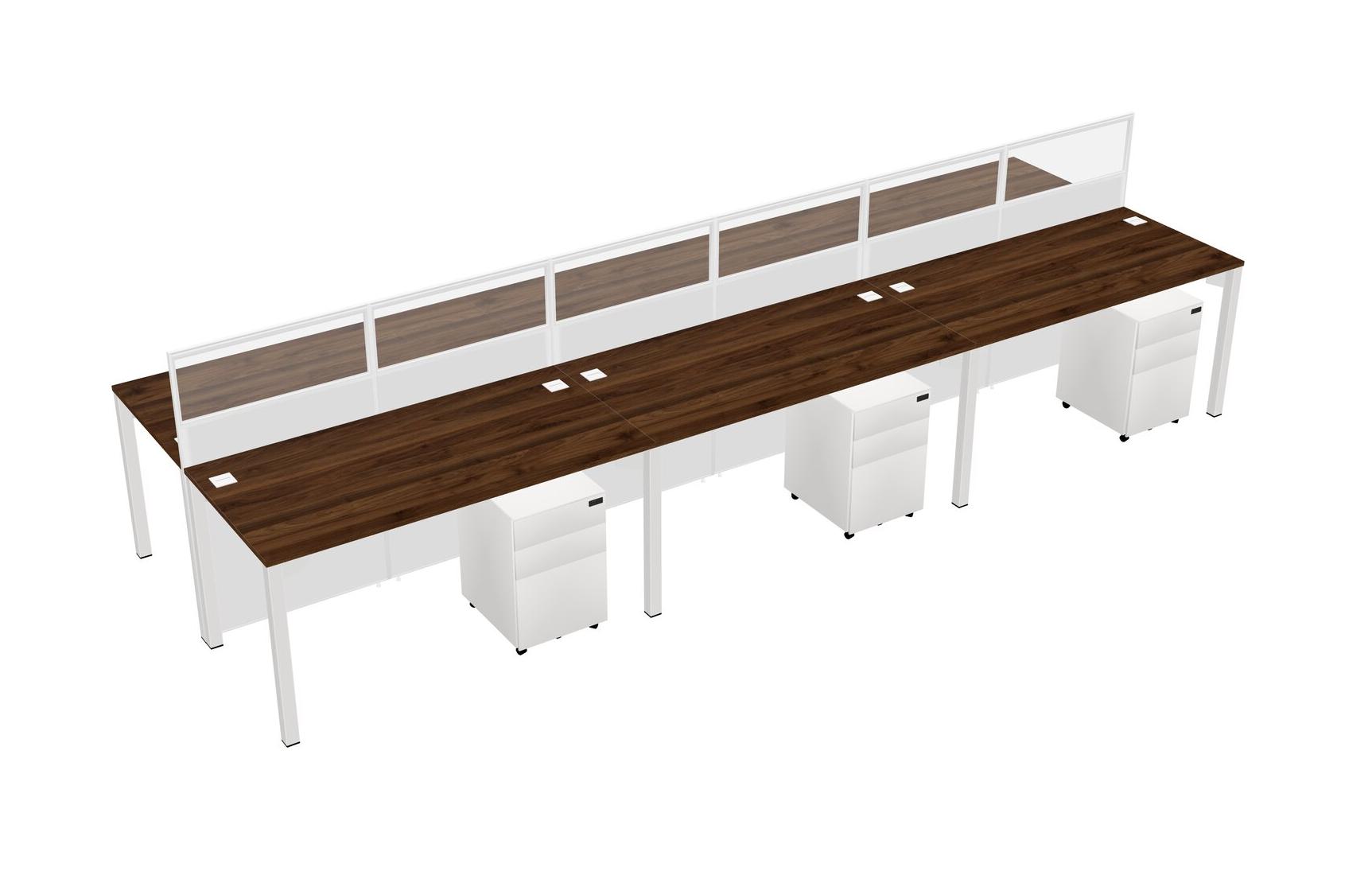 Columbia Walnut Shared Rectangular Office Cubicle Panel System With Mobile Drawers For 6 Persons