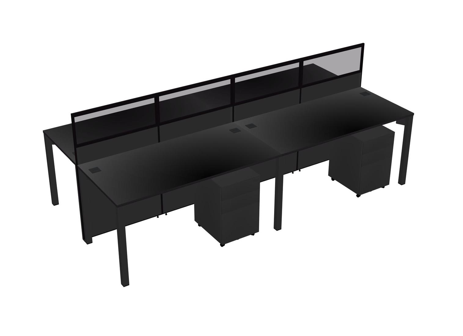 Black Shared Rectangular Office Cubicle Panel System With Mobile Drawers For 4 Persons