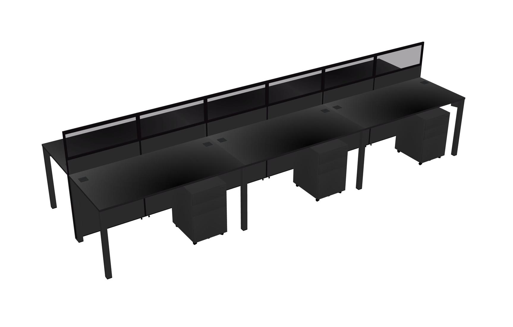 Black Shared Rectangular Office Cubicle Panel System With Mobile Drawers For 6 Persons
