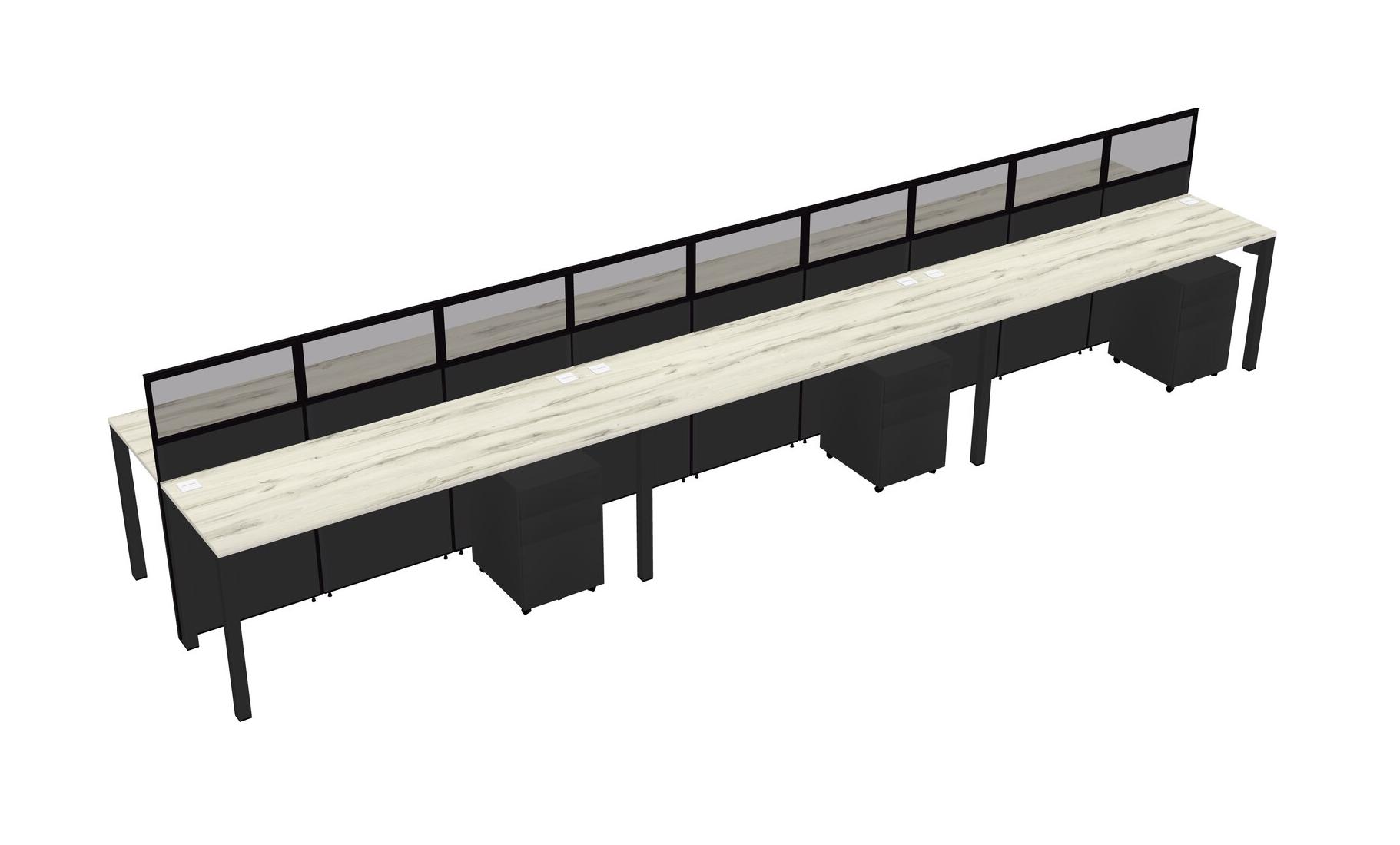 Heinne Holz Shared Rectangular Office Cubicle Panel System With Mobile Drawers For 6 Persons