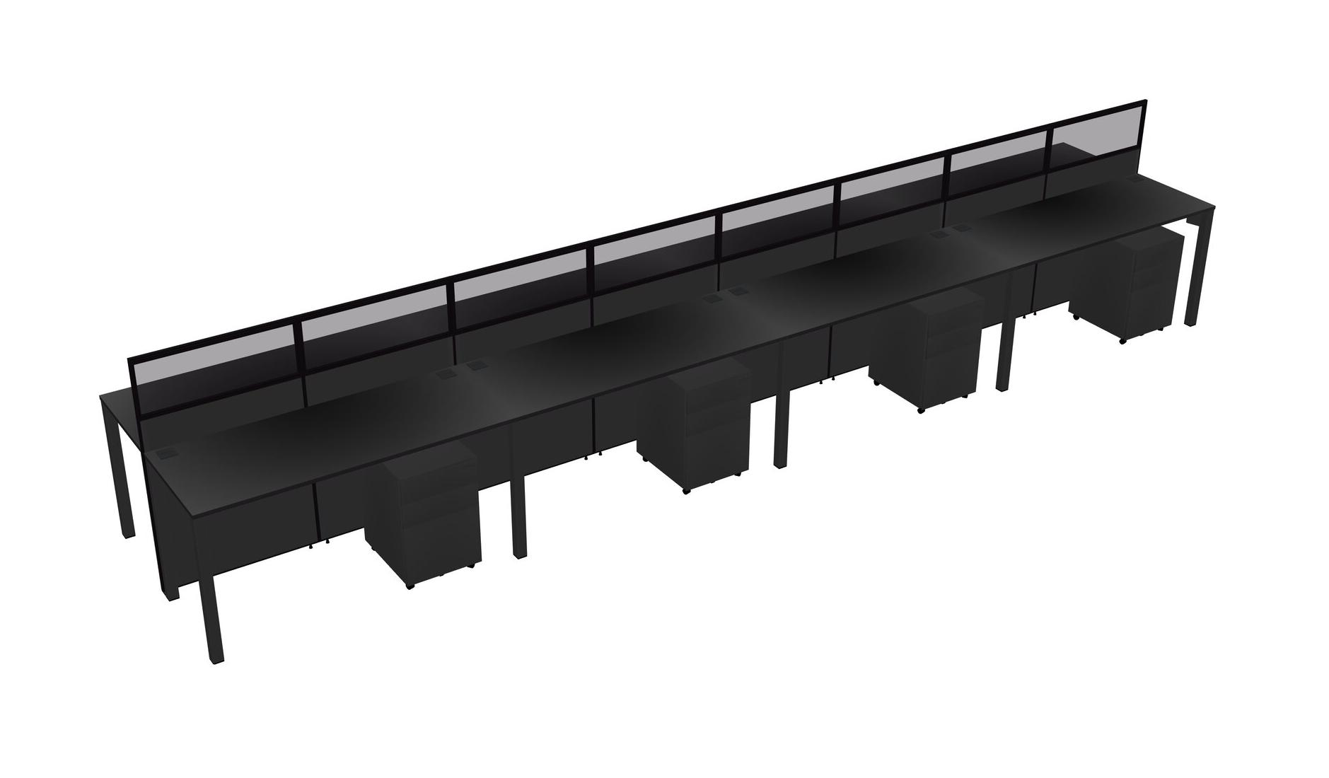 Black Shared Rectangular Office Cubicle Panel System With Mobile Drawers For 8 Persons