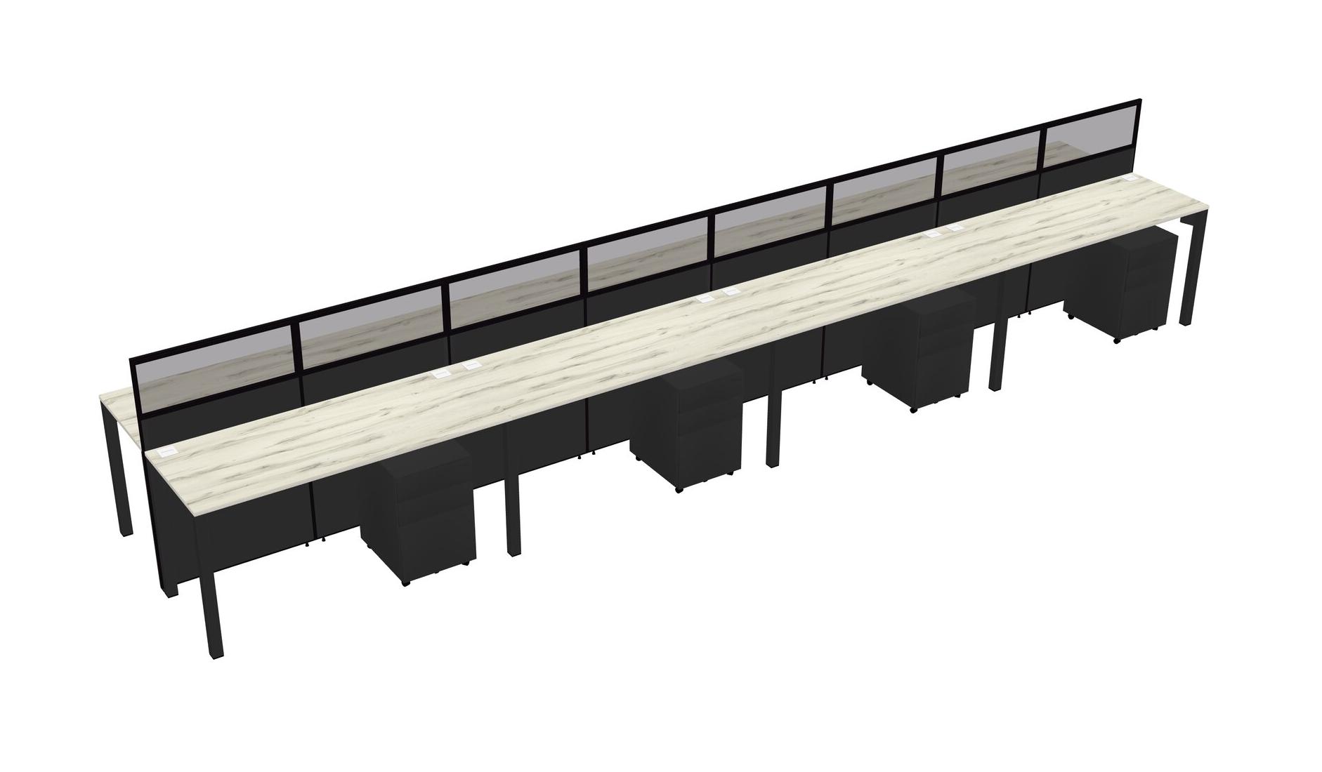 Heinne Holz Shared Rectangular Office Cubicle Panel System With Mobile Drawers For 8 Persons