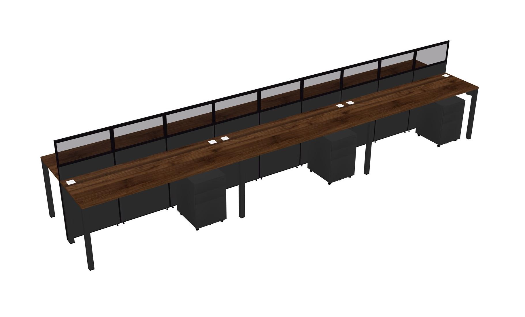 Columbia Walnut Shared Rectangular Office Cubicle Panel System With Mobile Drawers For 6 Persons