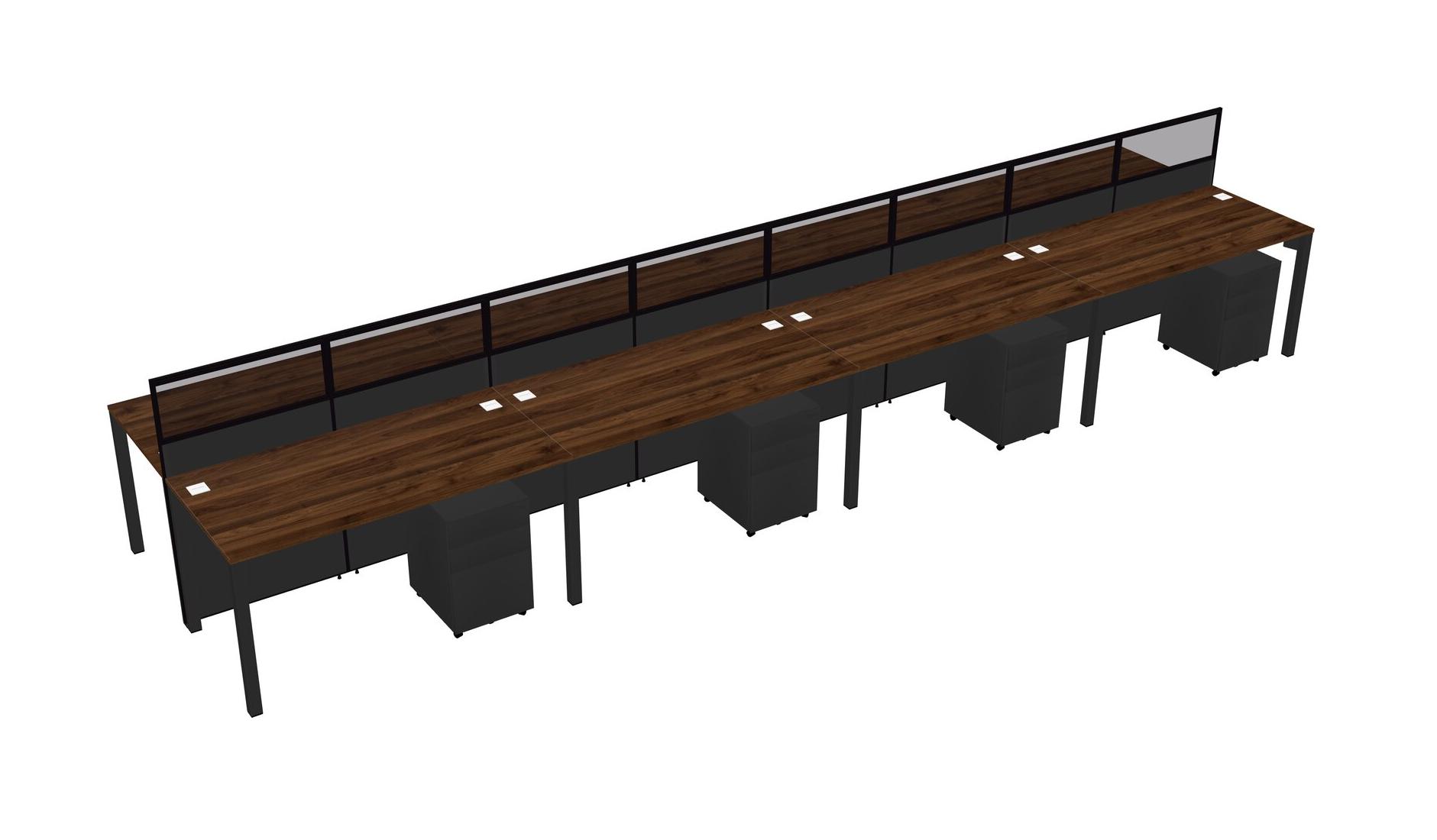 Columbia Walnut Shared Rectangular Office Cubicle Panel System With Mobile Drawers For 8 Persons