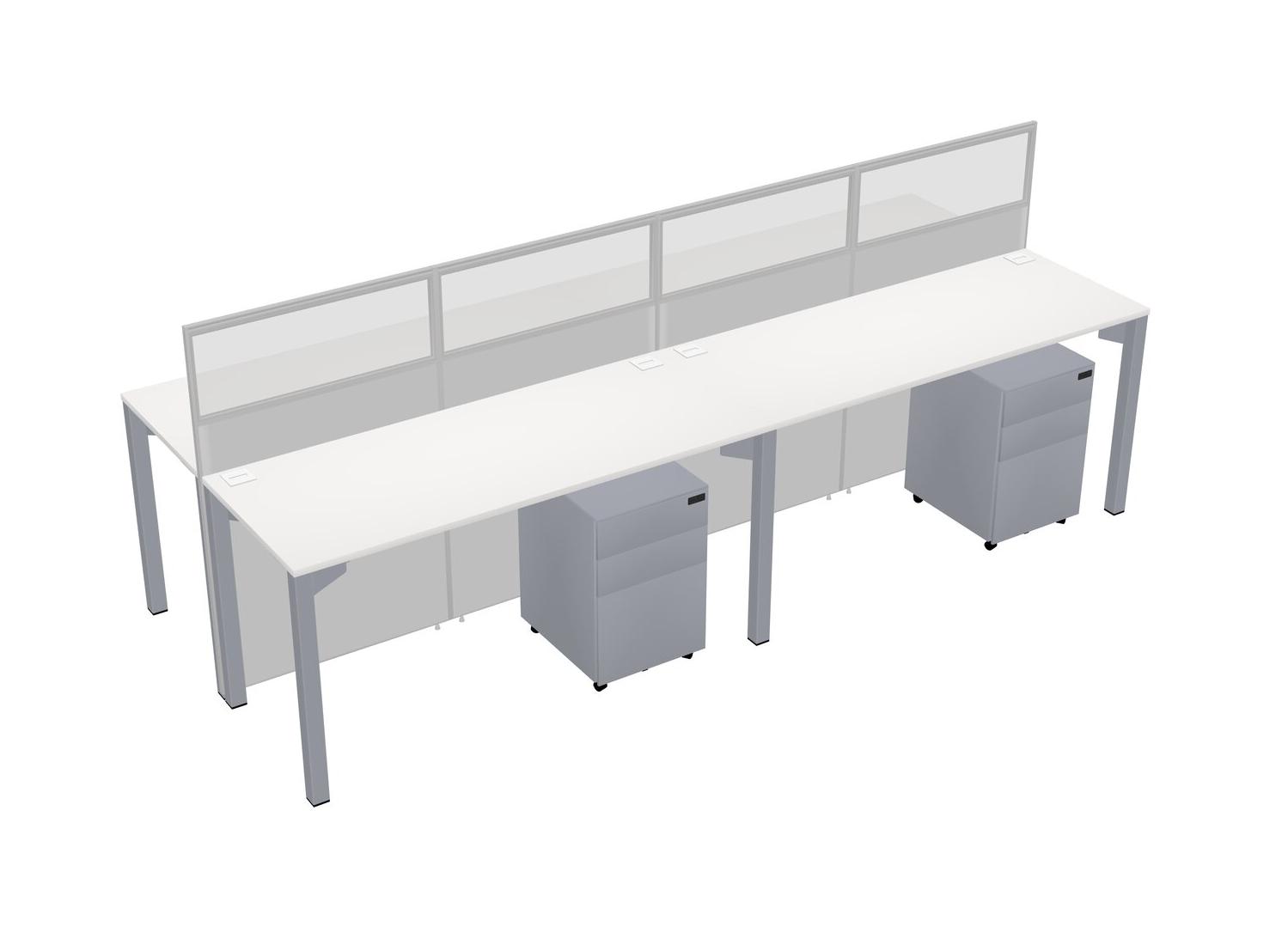 White Shared Rectangular Office Cubicle Panel System With Mobile Drawers For 4 Persons