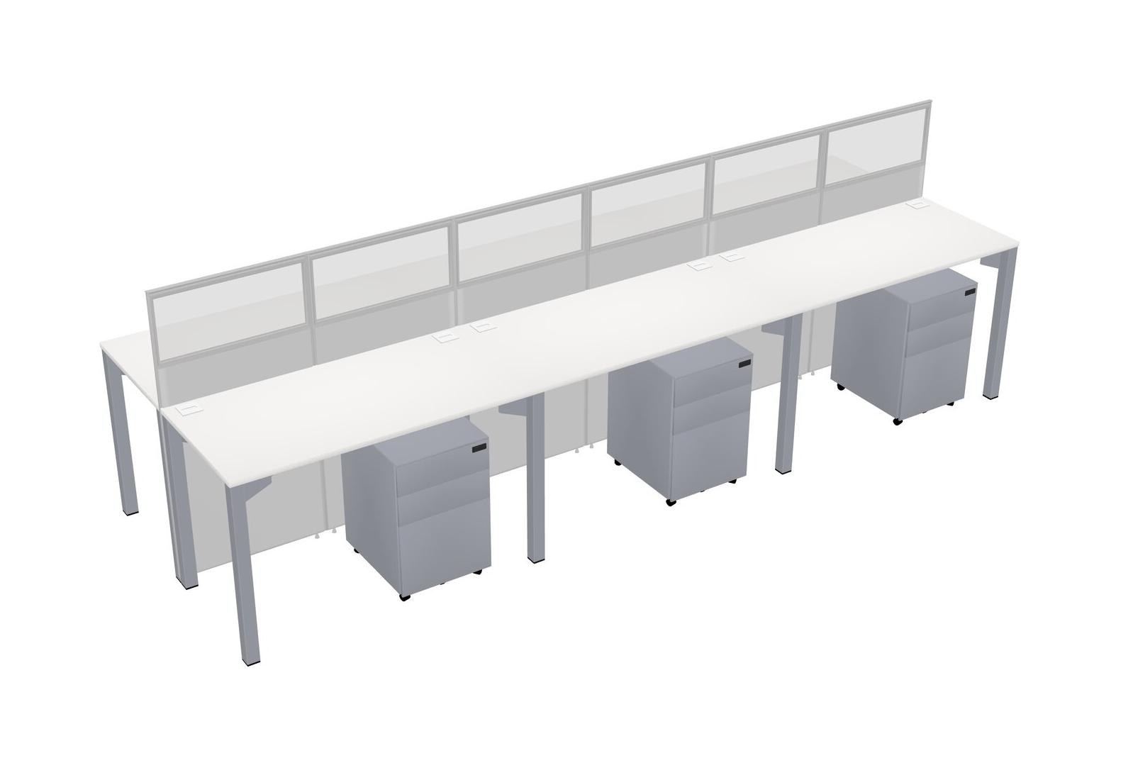 White Shared Rectangular Office Cubicle Panel System With Mobile Drawers For 6 Persons