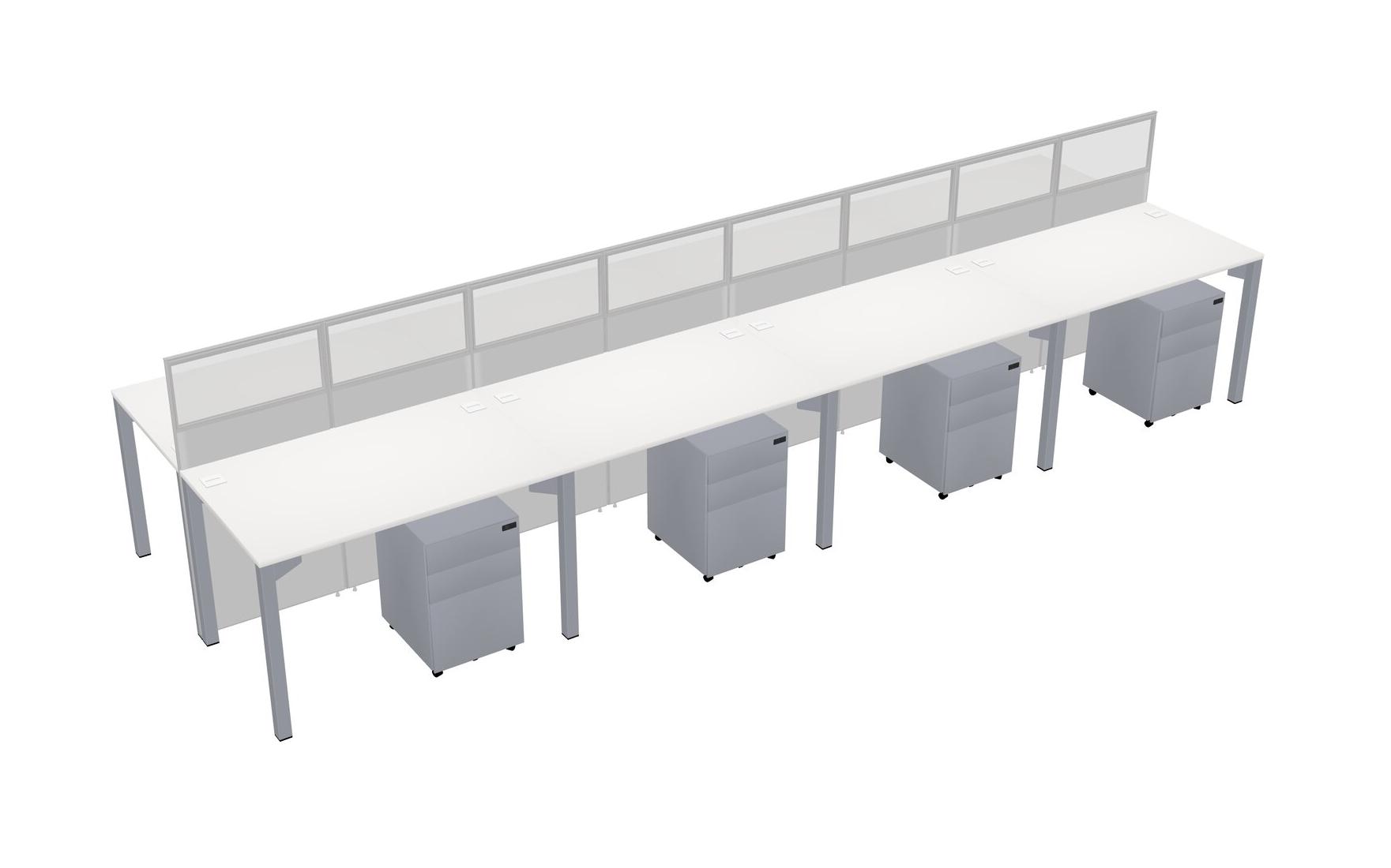 White Shared Rectangular Office Cubicle Panel System With Mobile Drawers For 8 Persons