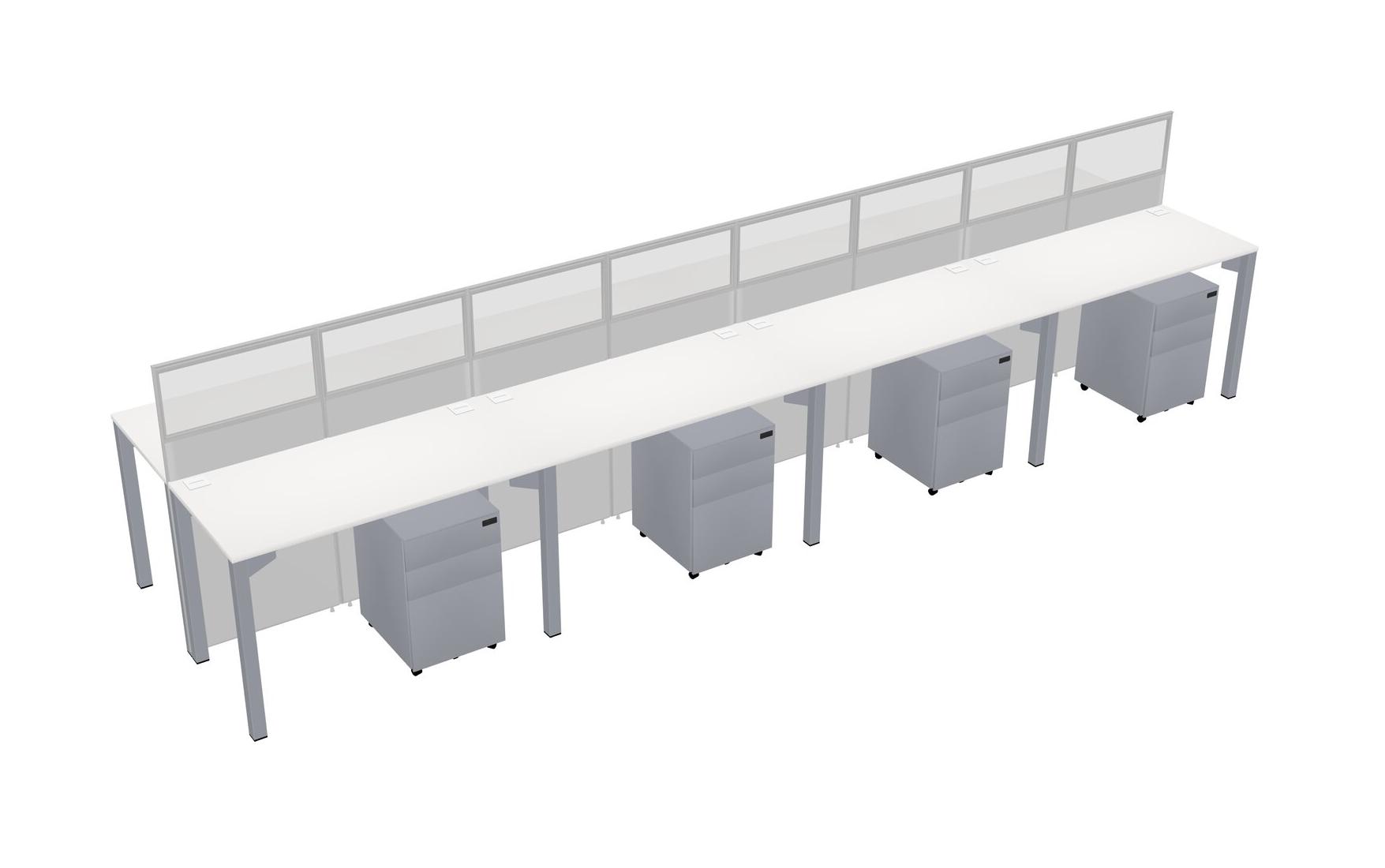 White Shared Rectangular Office Cubicle Panel System With Mobile Drawers For 8 Persons