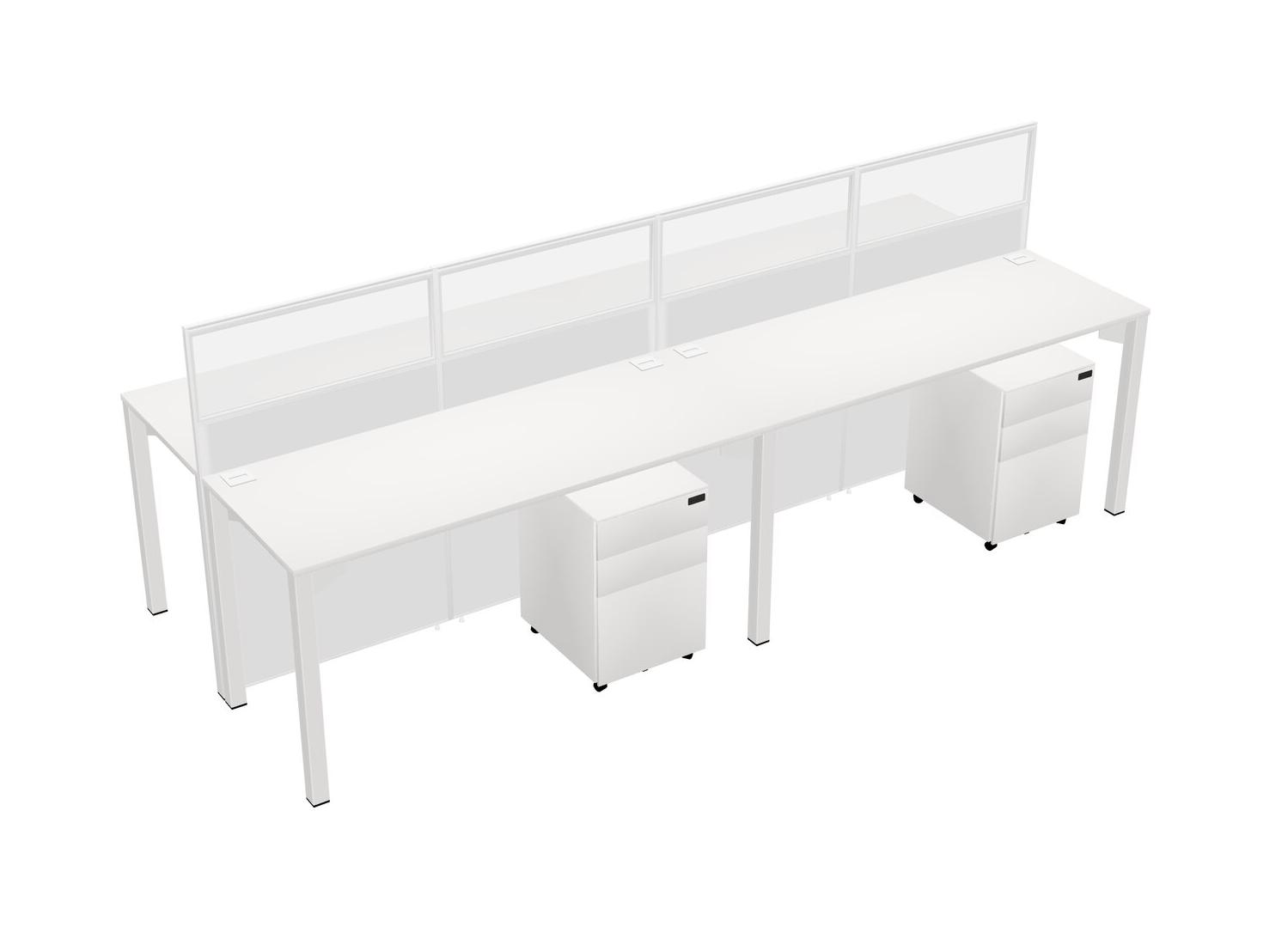 White Shared Rectangular Office Cubicle Panel System With Mobile Drawers For 4 Persons