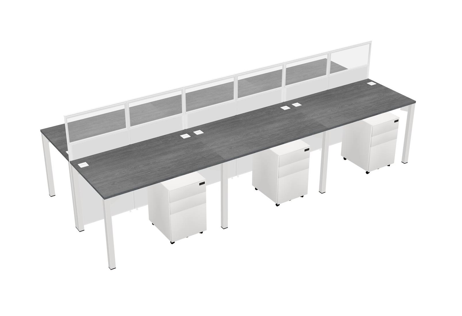 Grey Shared Rectangular Office Cubicle Panel System With Mobile Drawers For 6 Persons