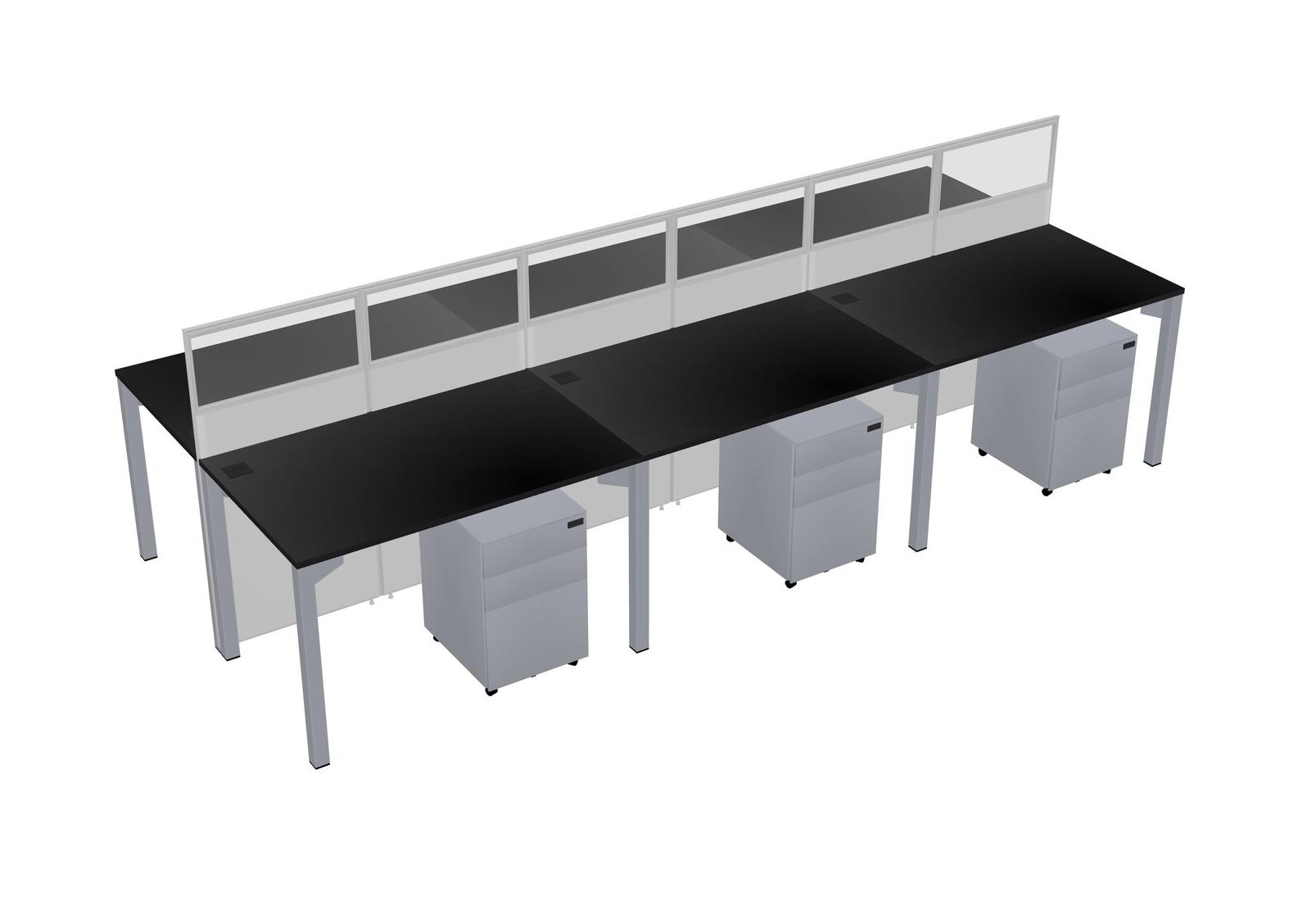 Black Shared Rectangular Office Cubicle Panel System With Mobile Drawers For 6 Persons