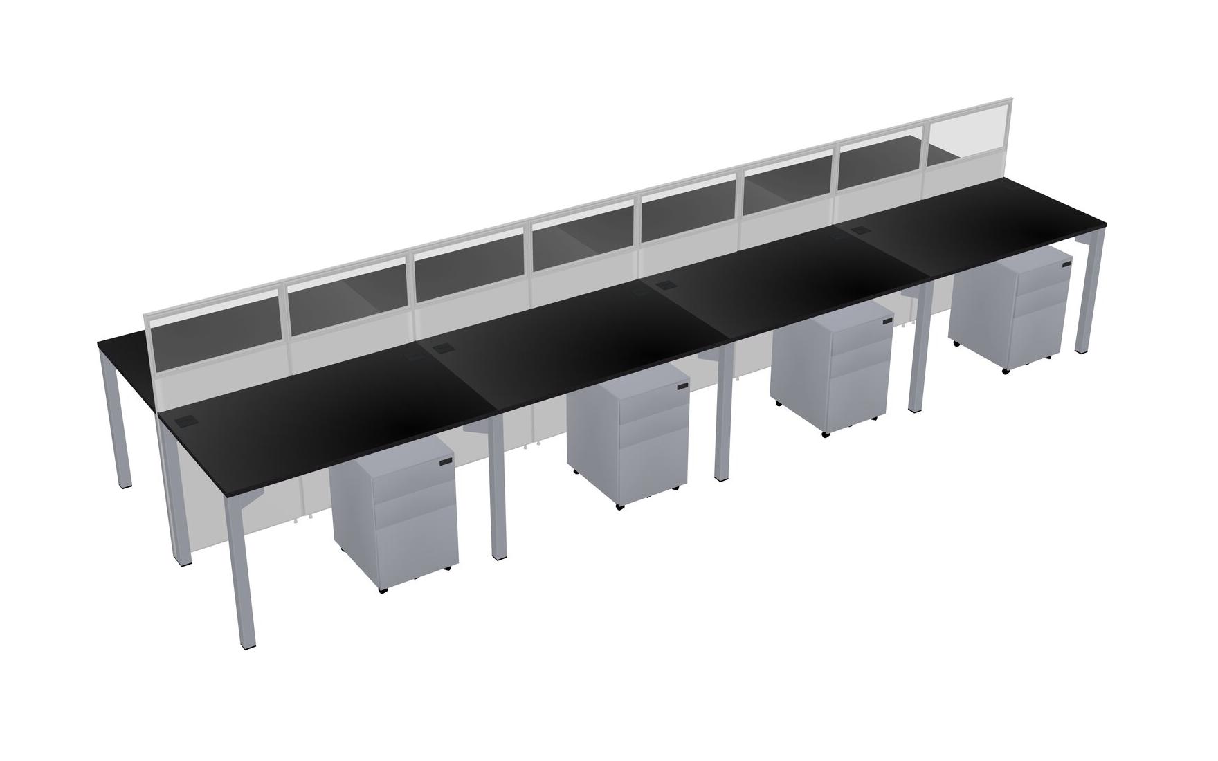 Black Shared Rectangular Office Cubicle Panel System With Mobile Drawers For 8 Persons