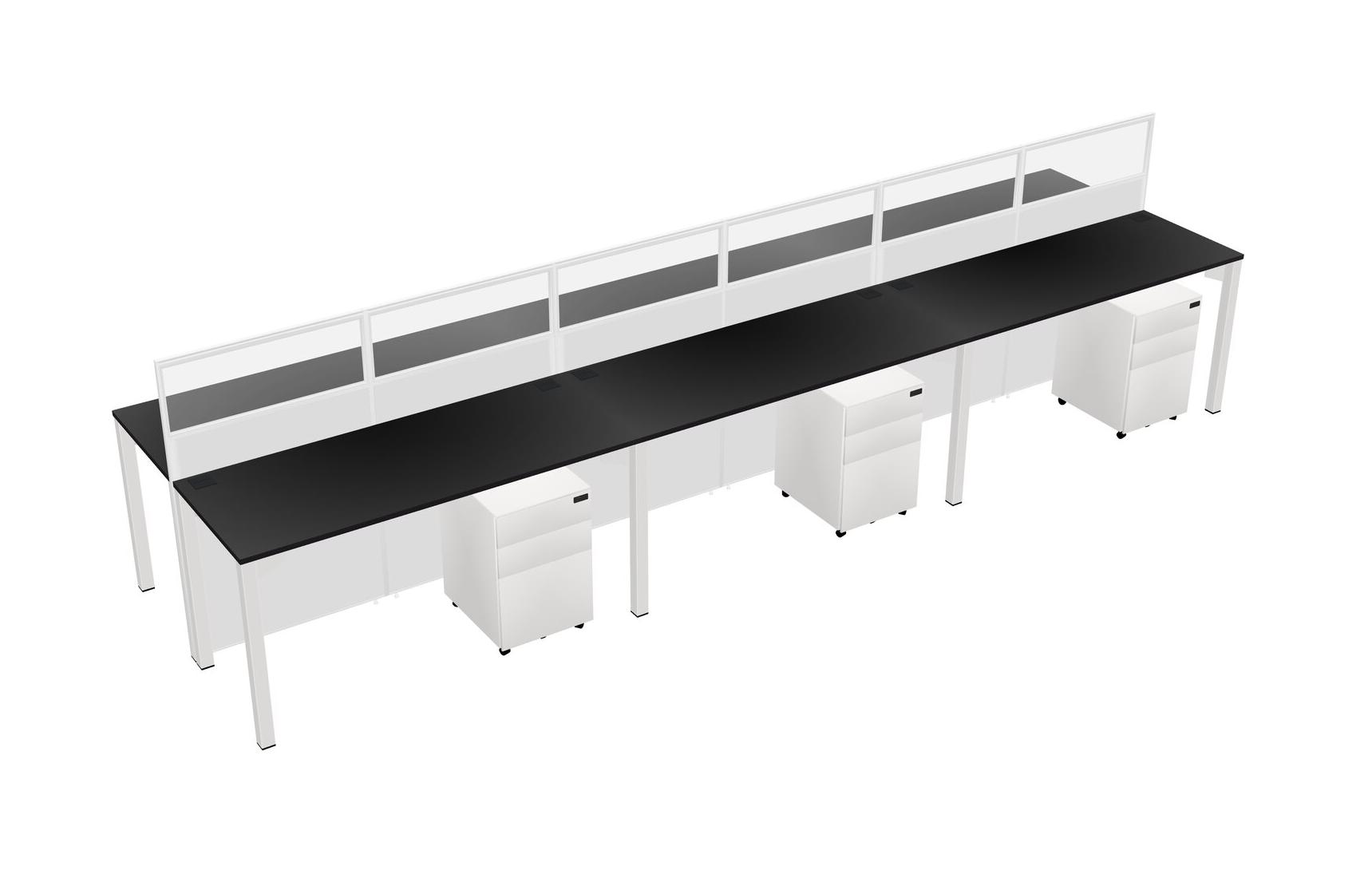 Black Shared Rectangular Office Cubicle Panel System With Mobile Drawers For 6 Persons