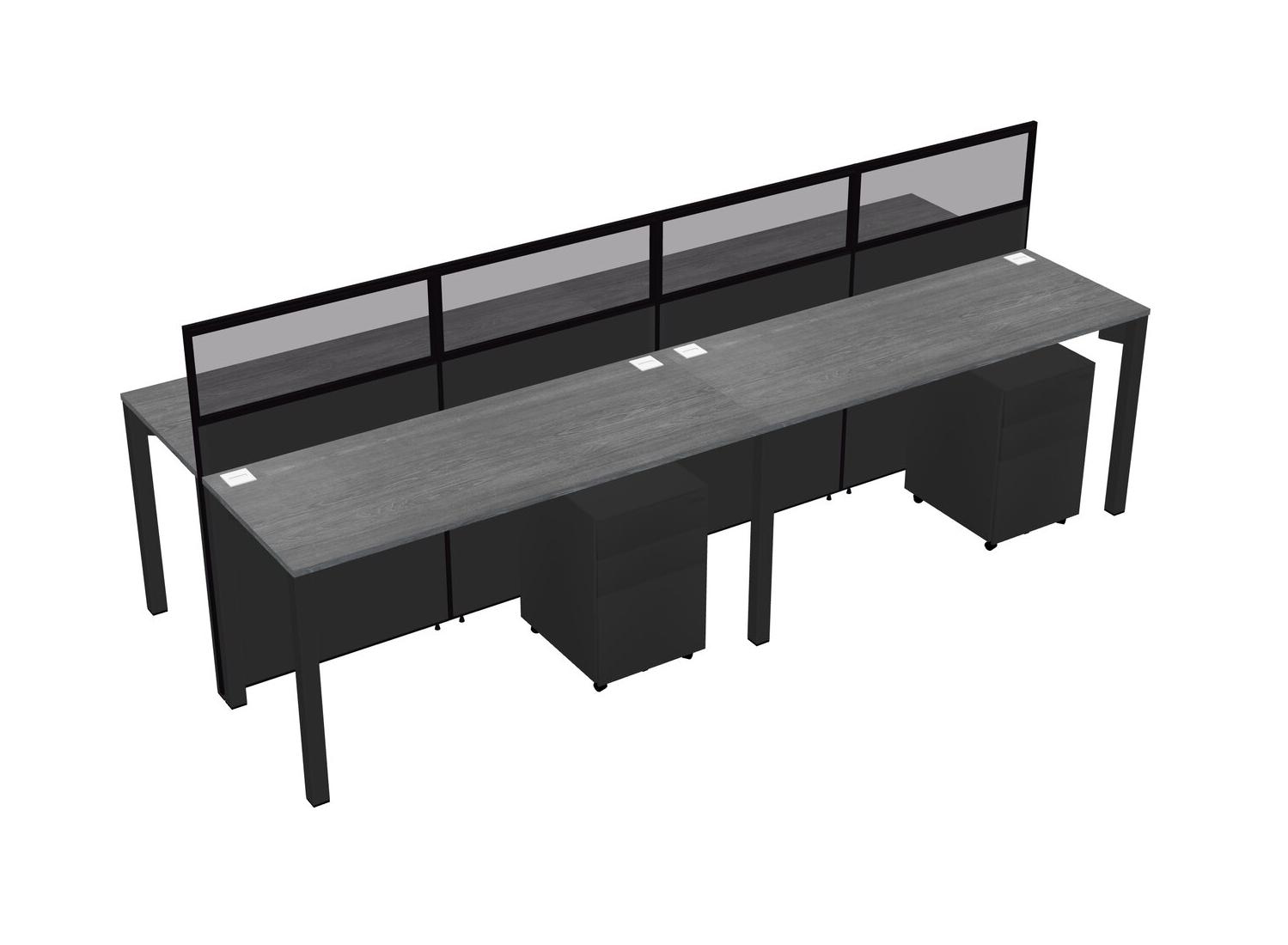 Grey Shared Rectangular Office Cubicle Panel System With Mobile Drawers For 4 Persons
