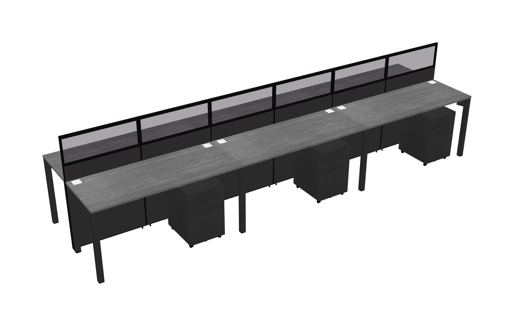 Grey Shared Rectangular Office Cubicle Panel System With Mobile Drawers For 6 Persons