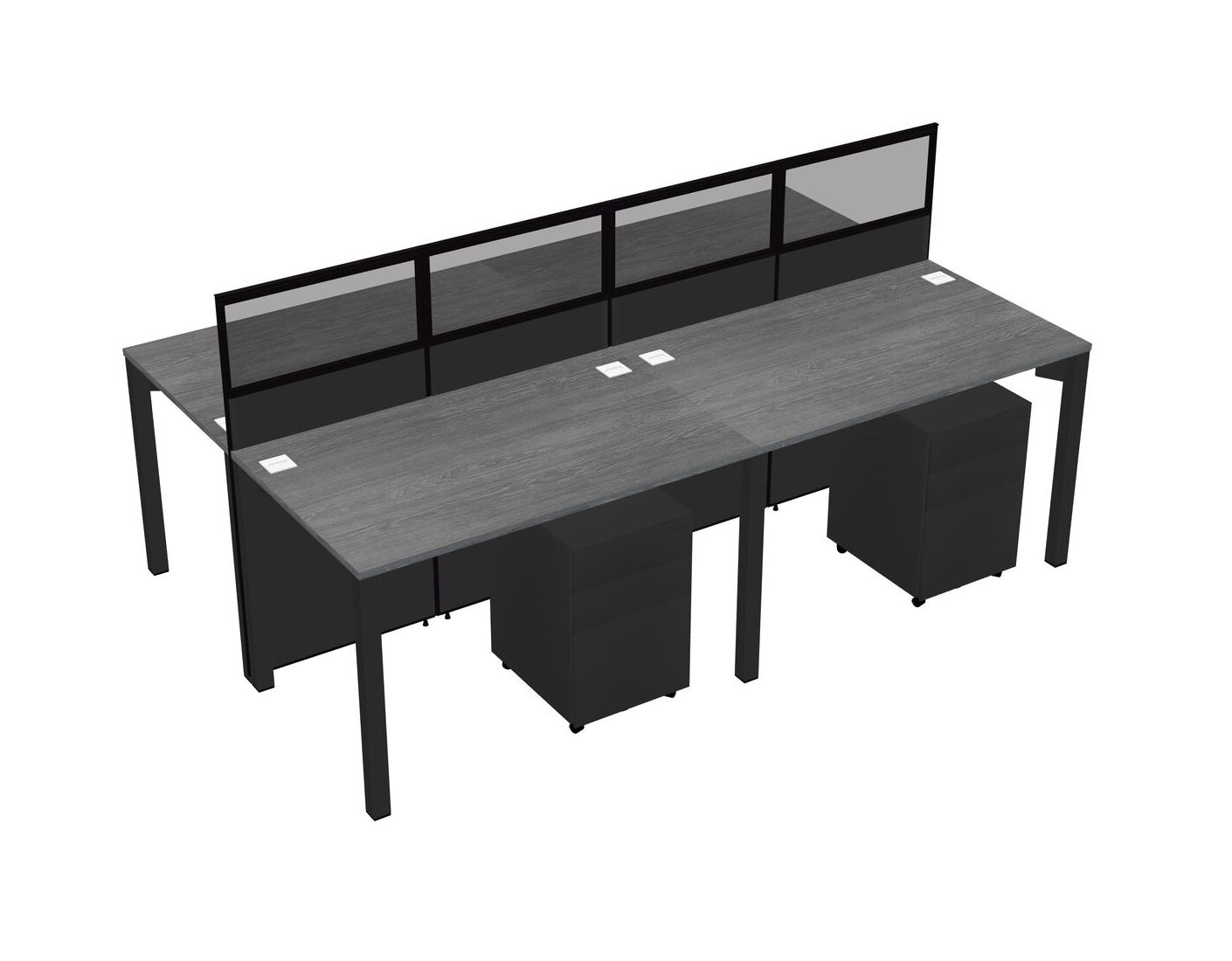 Grey Shared Rectangular Office Cubicle Panel System With Mobile Drawers For 4 Persons