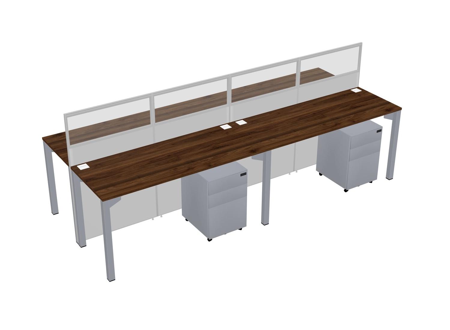 Columbia Walnut Shared Rectangular Office Cubicle Panel System With Mobile Drawers For 4 Persons