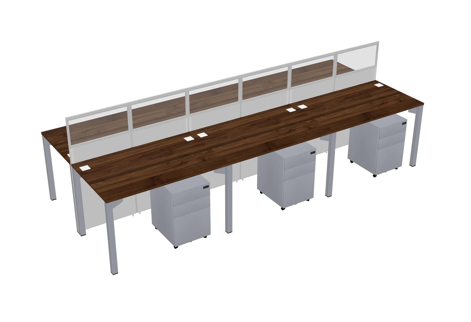 Columbia Walnut Shared Rectangular Office Cubicle Panel System With Mobile Drawers For 6 Persons