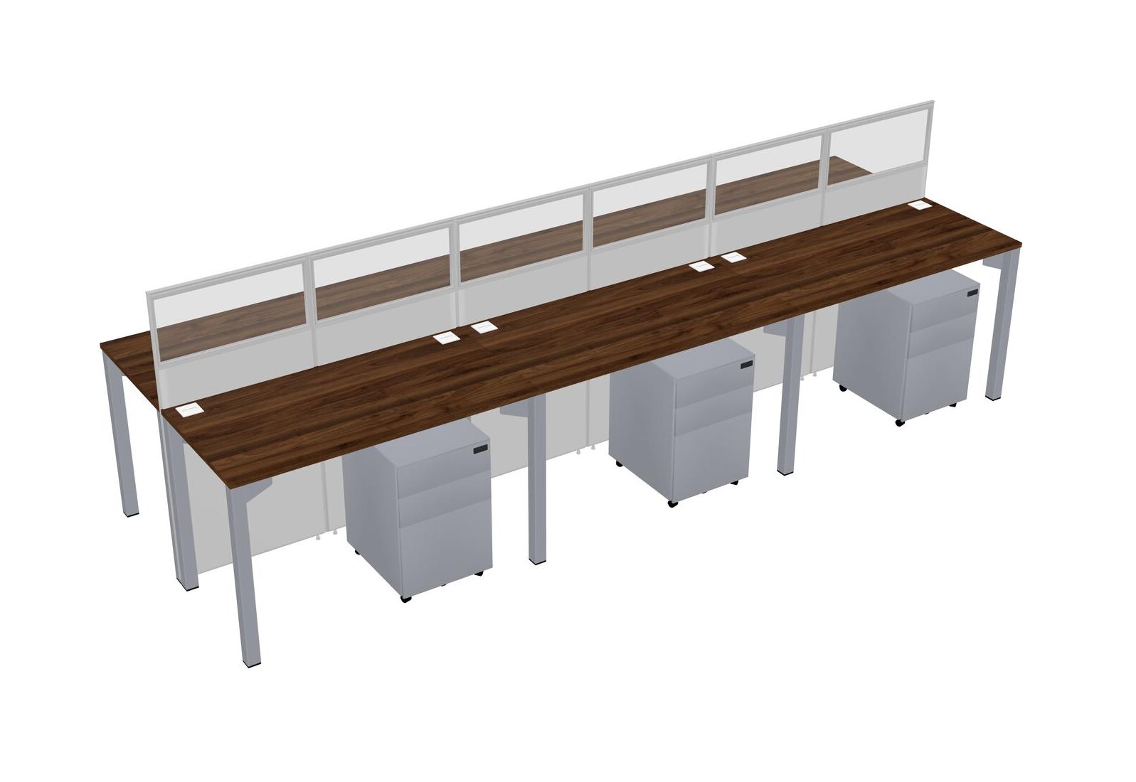 Columbia Walnut Shared Rectangular Office Cubicle Panel System With Mobile Drawers For 6 Persons