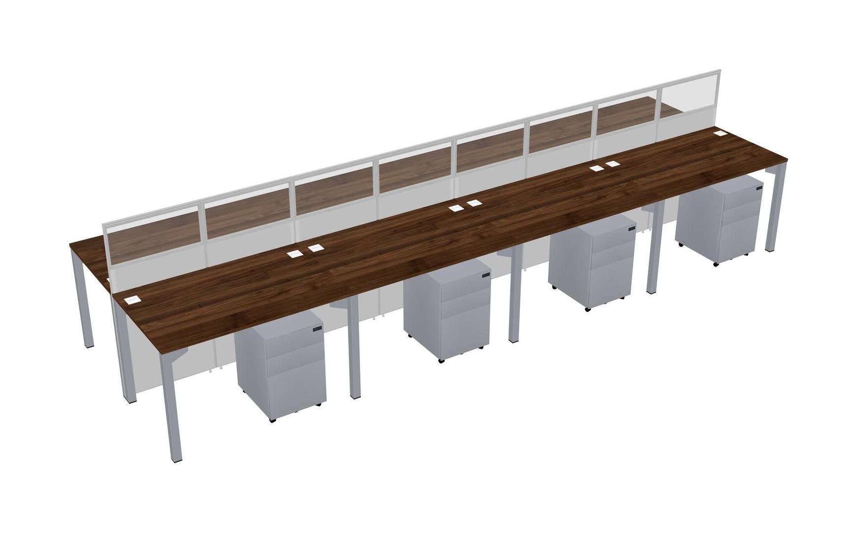Columbia Walnut Shared Rectangular Office Cubicle Panel System With Mobile Drawers For 8 Persons