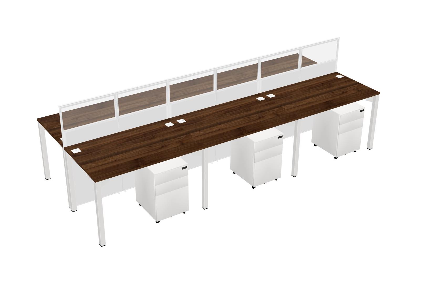 Columbia Walnut Shared Rectangular Office Cubicle Panel System With Mobile Drawers For 6 Persons