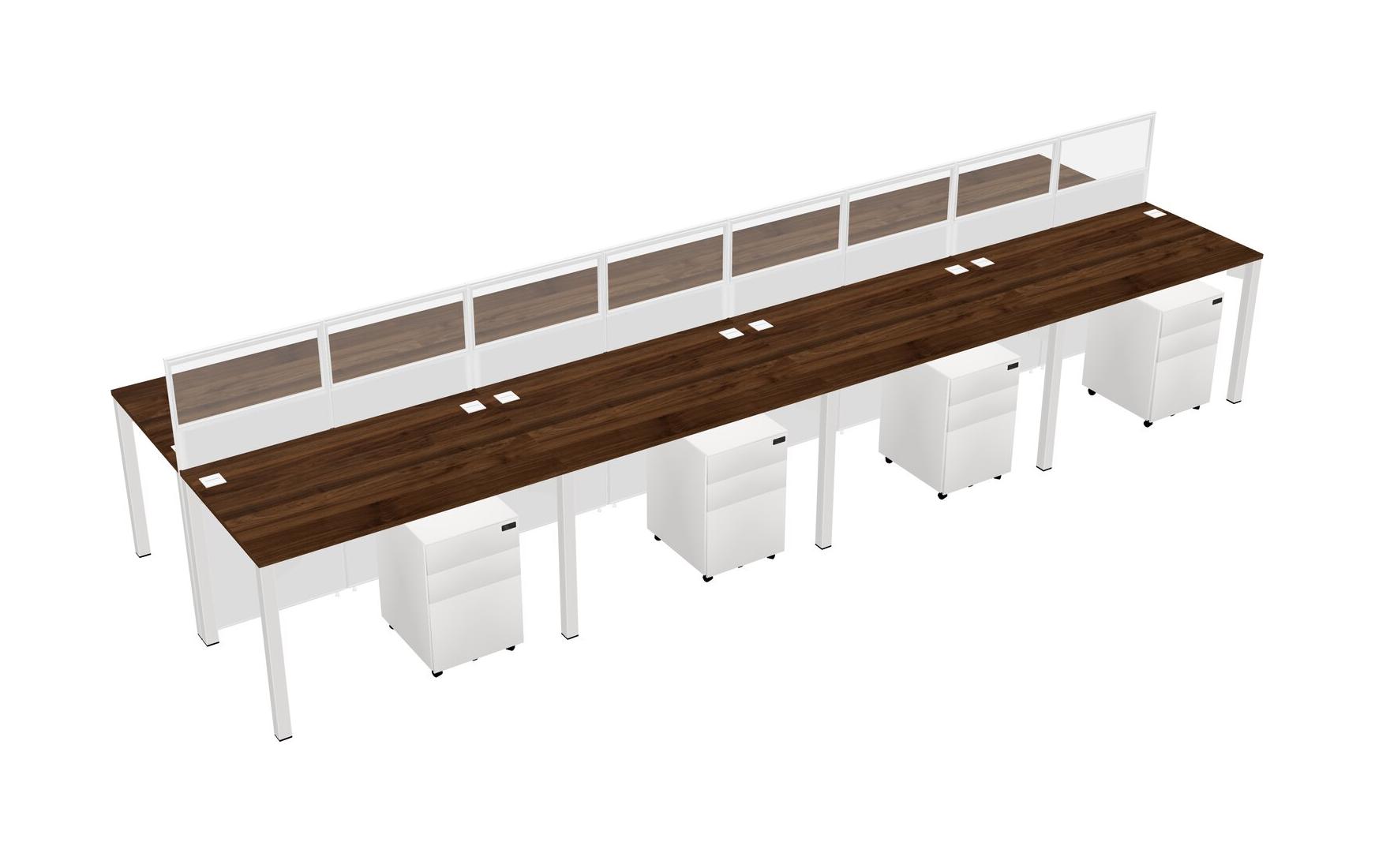 Columbia Walnut Shared Rectangular Office Cubicle Panel System With Mobile Drawers For 8 Persons