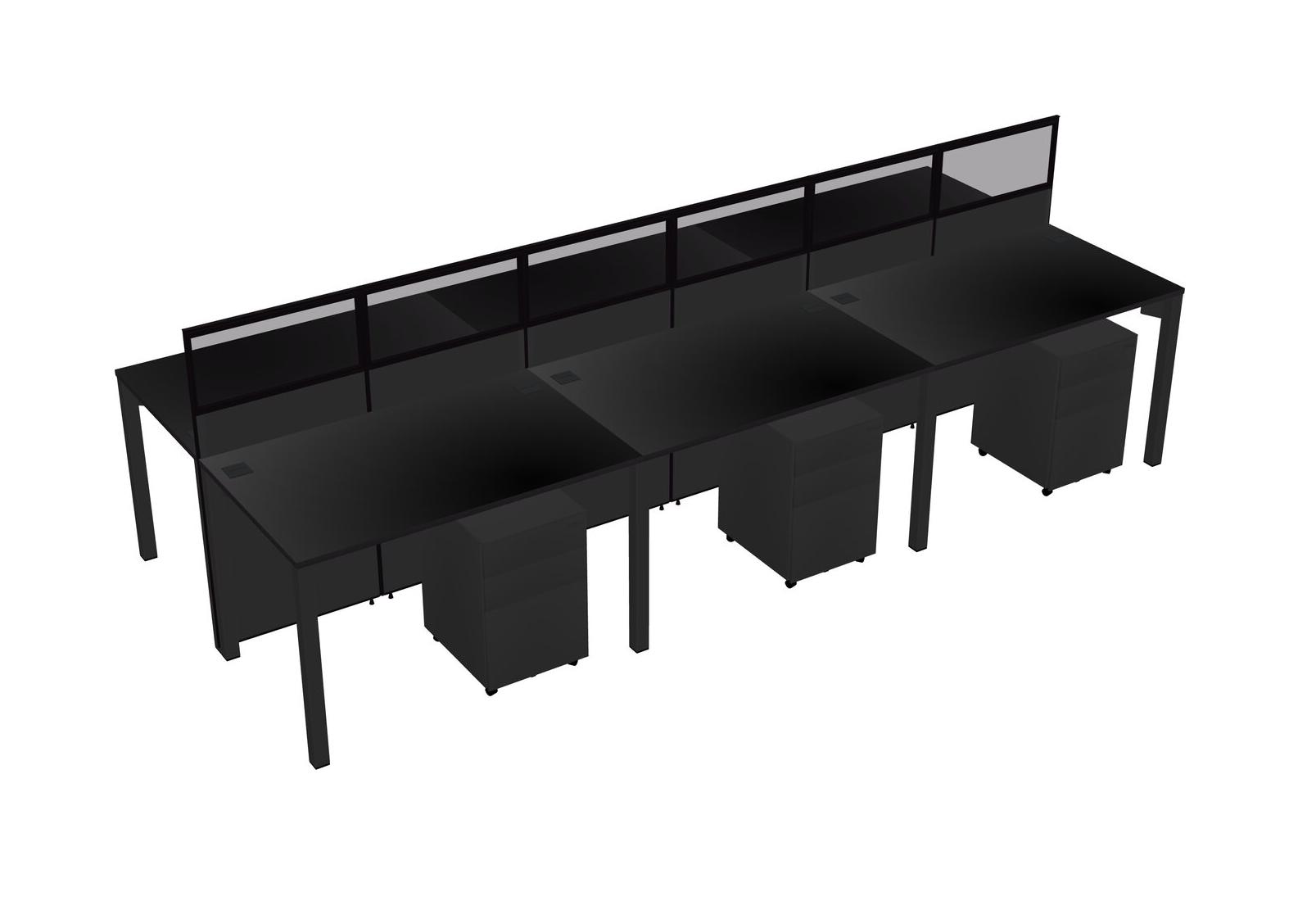 Black Shared Rectangular Office Cubicle Panel System With Mobile Drawers For 6 Persons