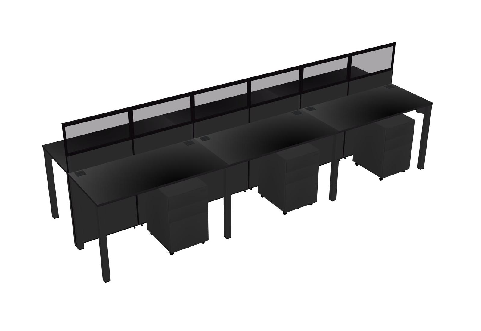Black Shared Rectangular Office Cubicle Panel System With Mobile Drawers For 6 Persons