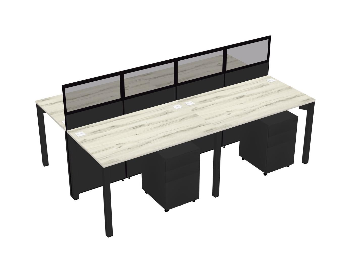 Heinne Holz Shared Rectangular Office Cubicle Panel System With Mobile Drawers For 4 Persons