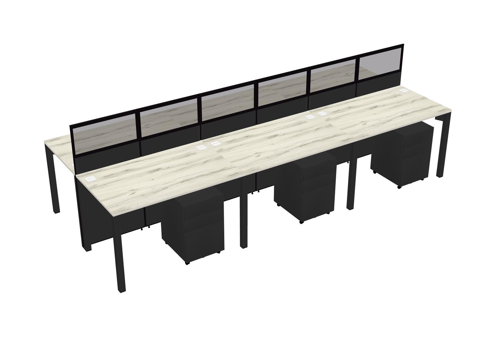 Heinne Holz Shared Rectangular Office Cubicle Panel System With Mobile Drawers For 6 Persons