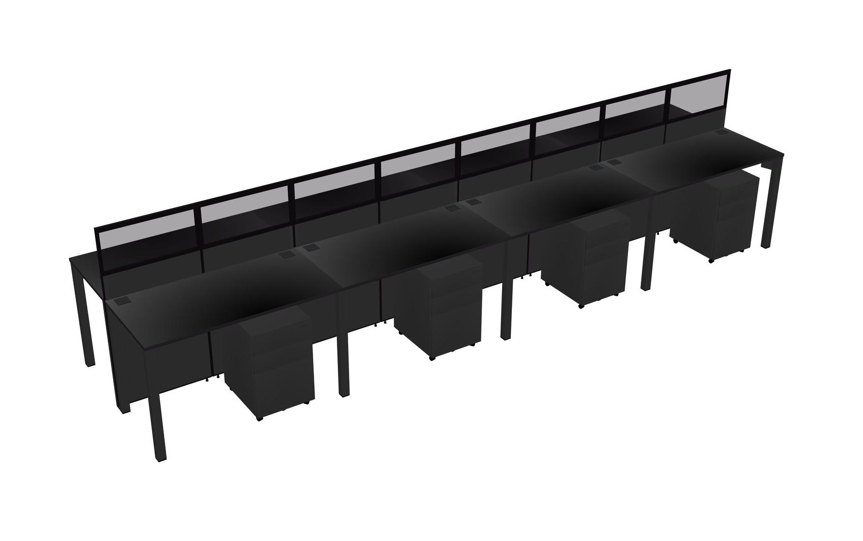 Black Shared Rectangular Office Cubicle Panel System With Mobile Drawers For 8 Persons