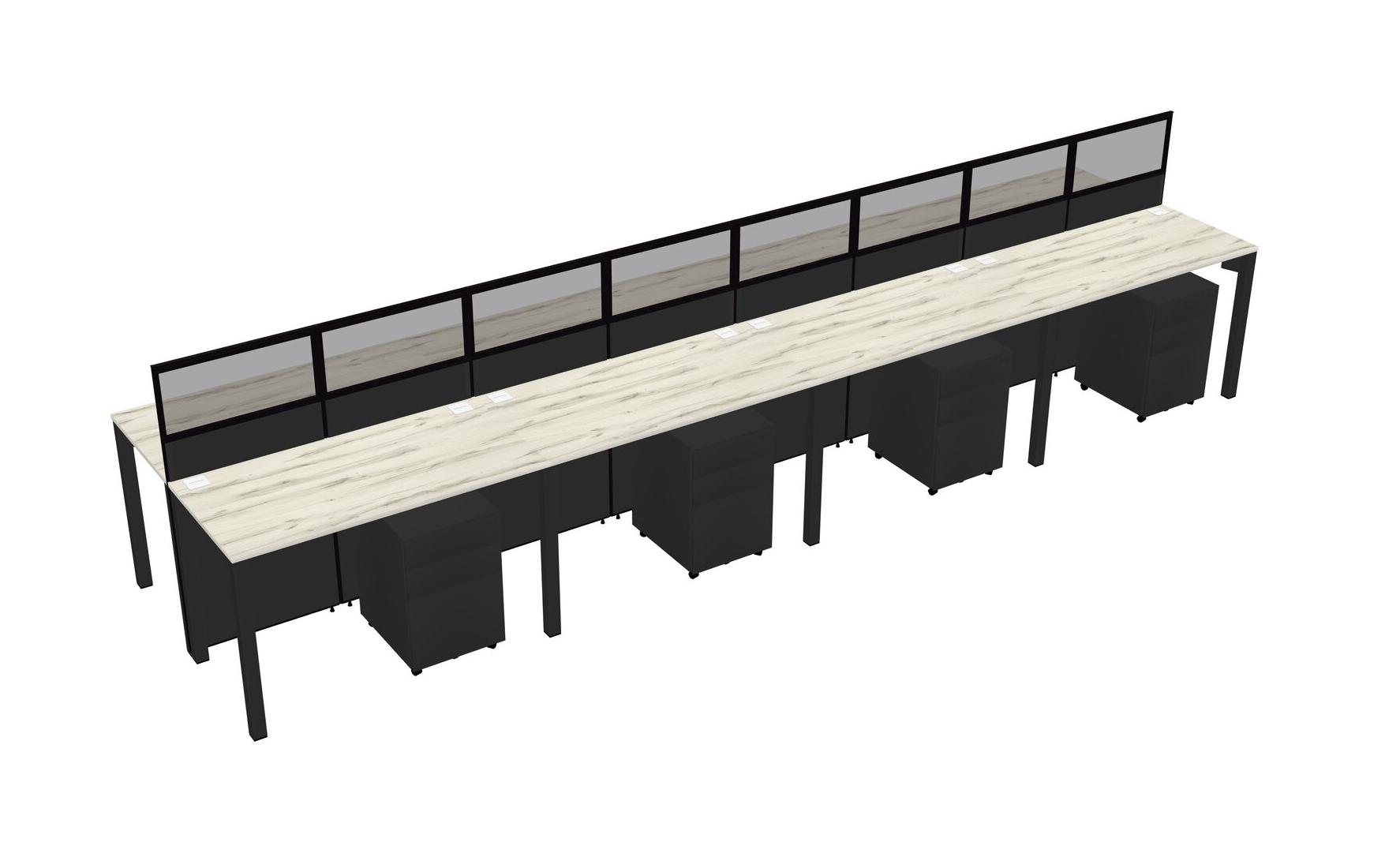 Heinne Holz Shared Rectangular Office Cubicle Panel System With Mobile Drawers For 8 Persons