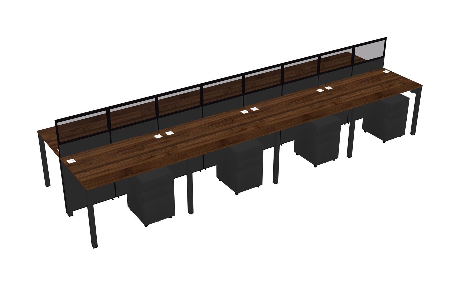 Columbia Walnut Shared Rectangular Office Cubicle Panel System With Mobile Drawers For 8 Persons