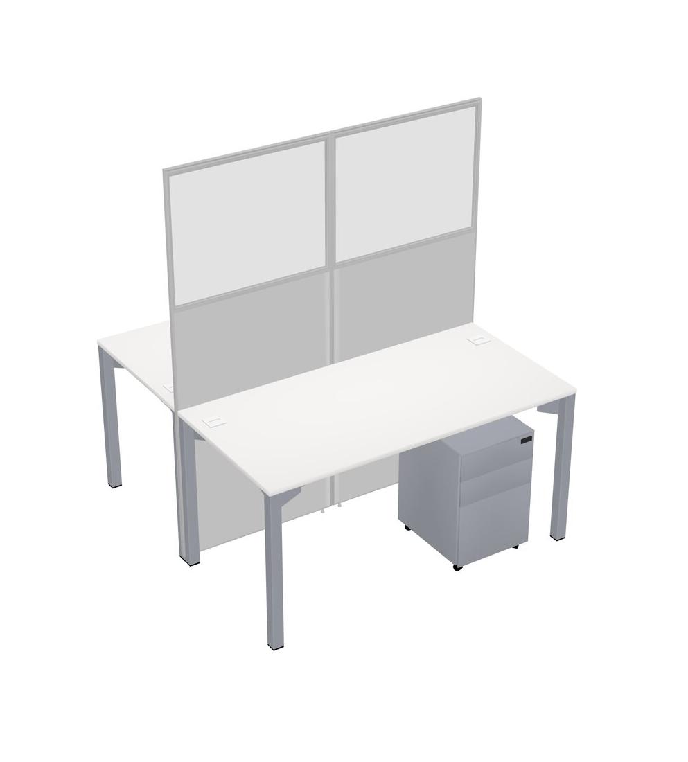 White Shared Rectangular Office Cubicle Panel System With Mobile Drawers For 2 Persons