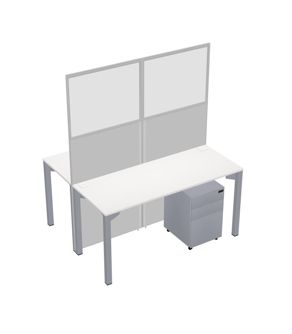 White Shared Rectangular Office Cubicle Panel System With Mobile Drawers For 2 Persons