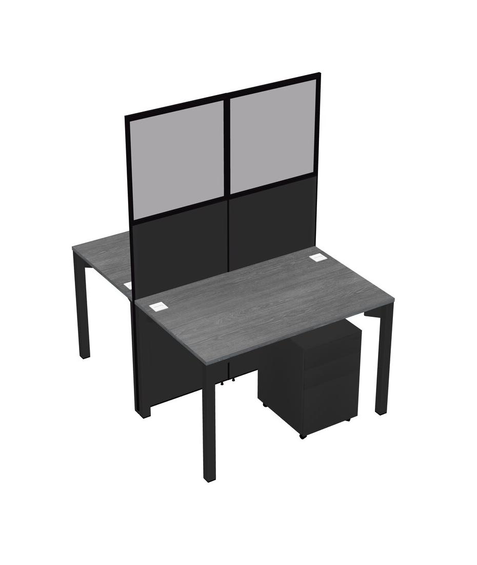 Grey Shared Rectangular Office Cubicle Panel System With Mobile Drawers For 2 Persons