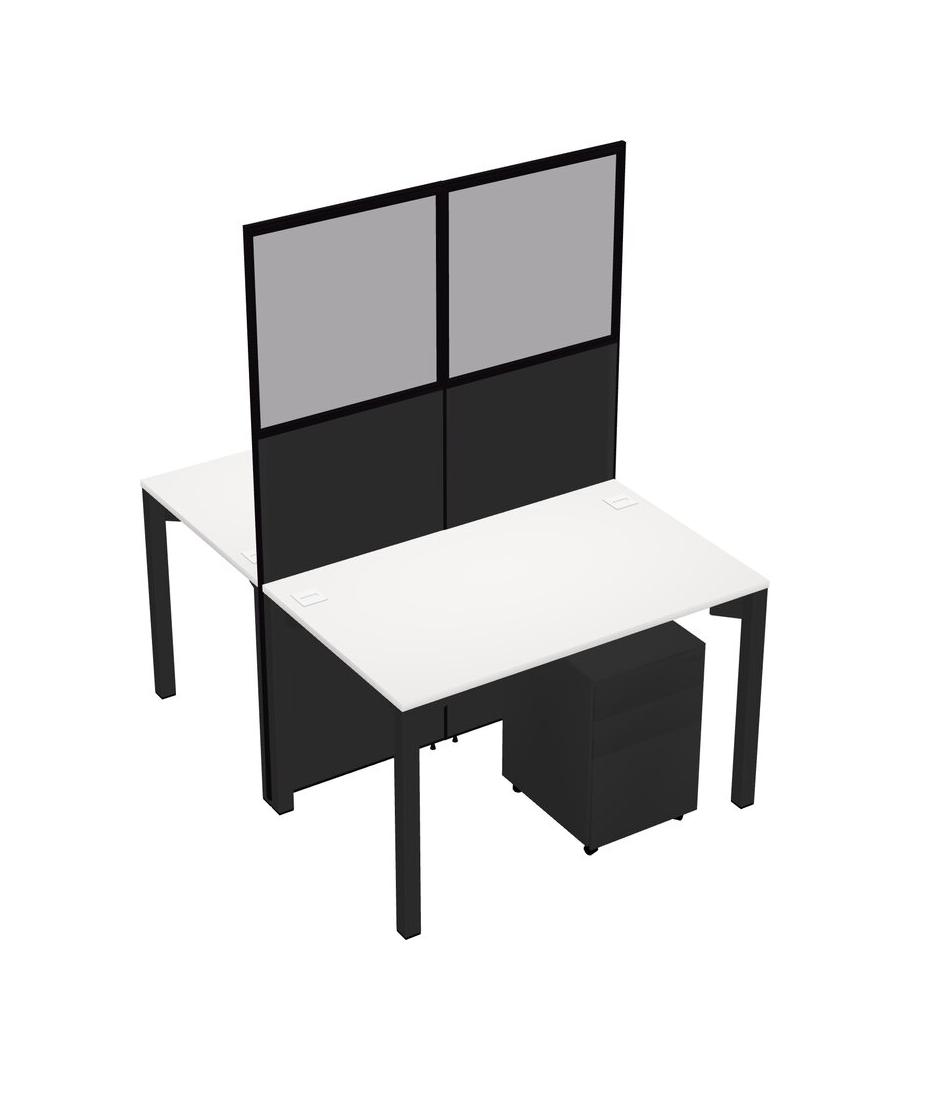 White Shared Rectangular Office Cubicle Panel System With Mobile Drawers For 2 Persons