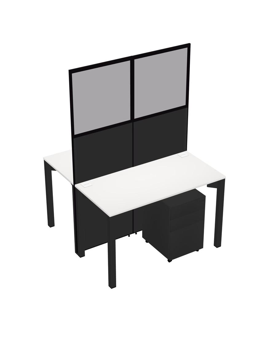 White Shared Rectangular Office Cubicle Panel System With Mobile Drawers For 2 Persons
