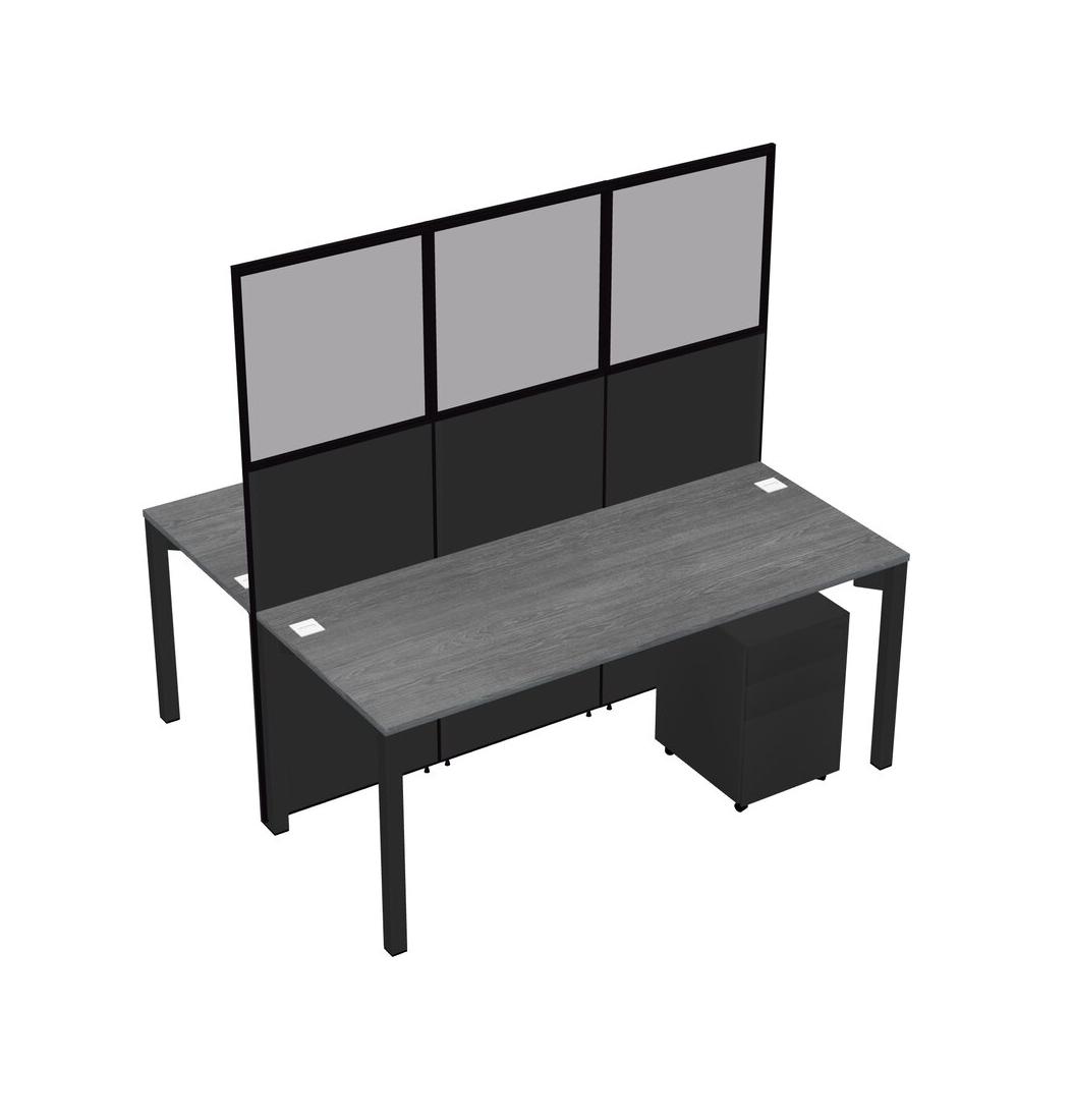 Grey Shared Rectangular Office Cubicle Panel System With Mobile Drawers For 2 Persons