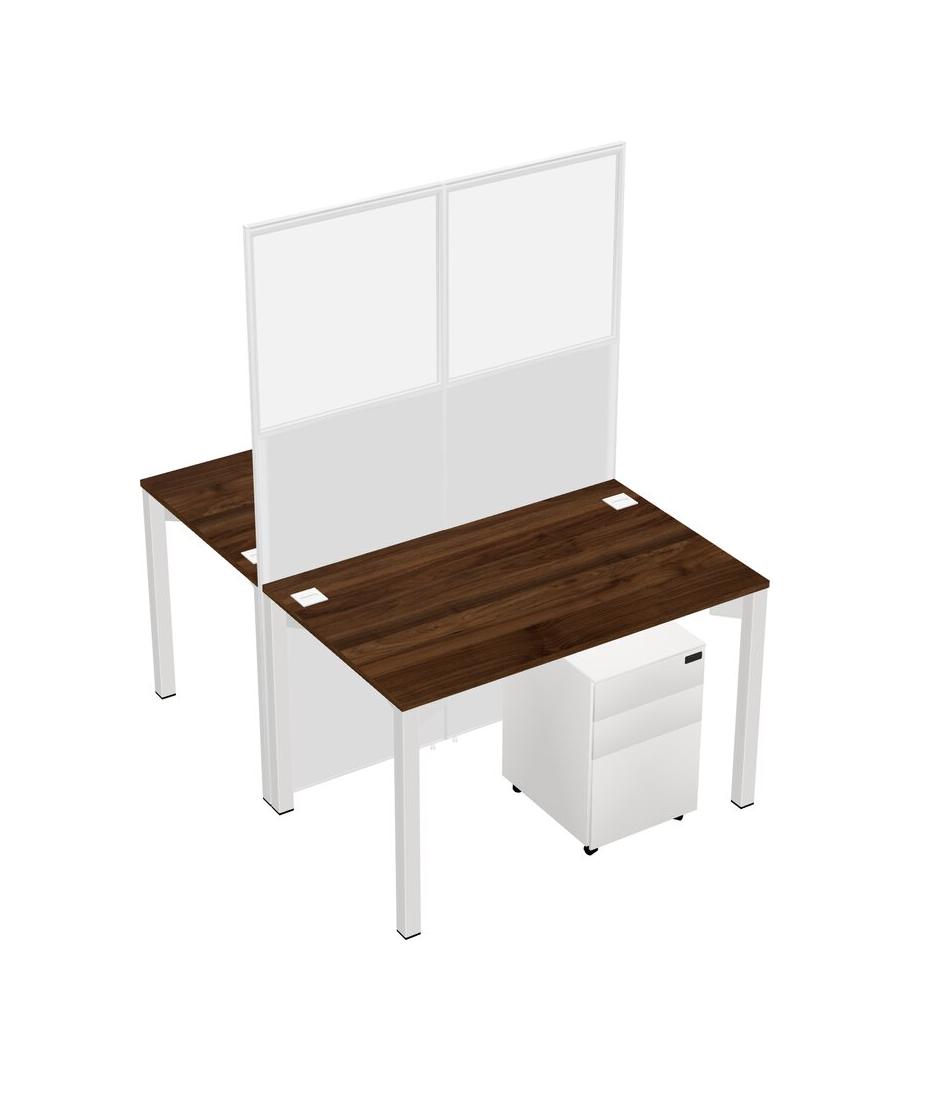 Columbia Walnut Shared Rectangular Office Cubicle Panel System With Mobile Drawers For 2 Persons